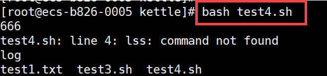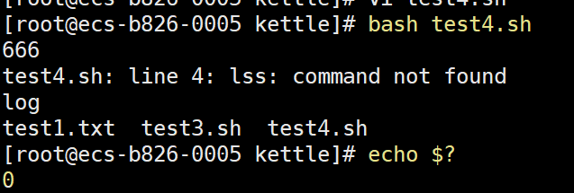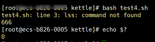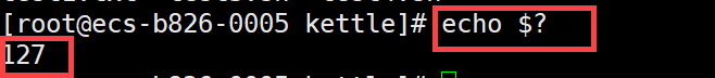 使用命令 echo $?查看任务执行结果,即可看到返回值为 127,即整个 Shell 脚本任务执行失败,如下图所示: