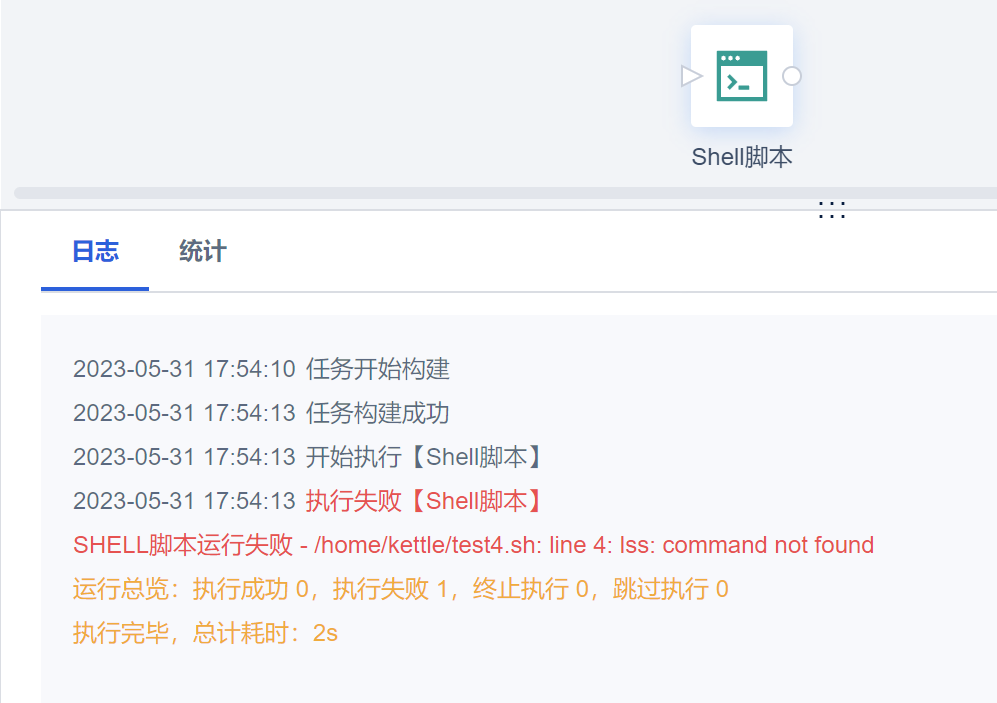 执行脚本,虽然 lss 任务执行失败,但是任务返回码为 0 ,即执行成功。