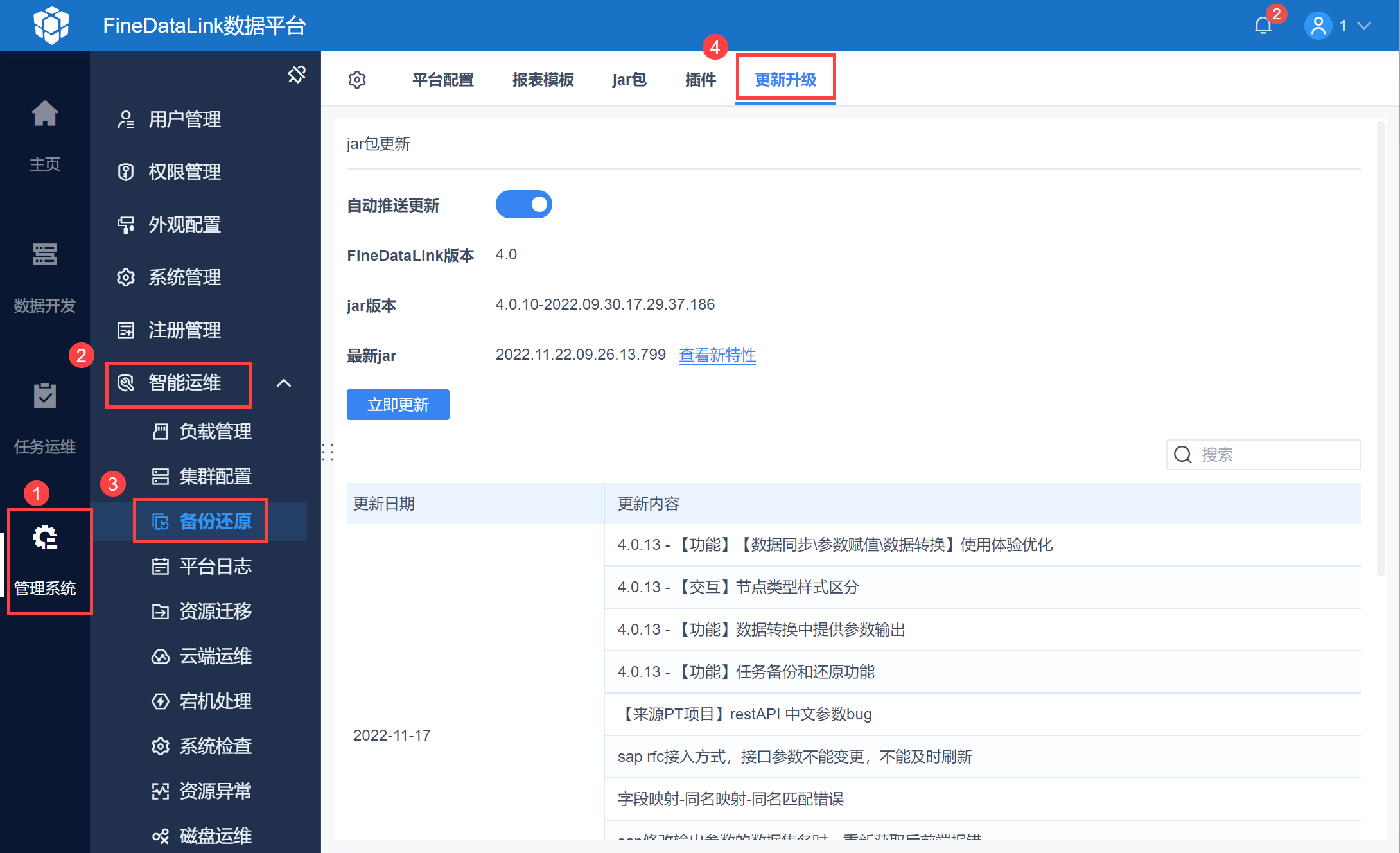 FineDataLink 独立部署工程支持在线一键升级,具体操作请参考:FineDataLink一键升级