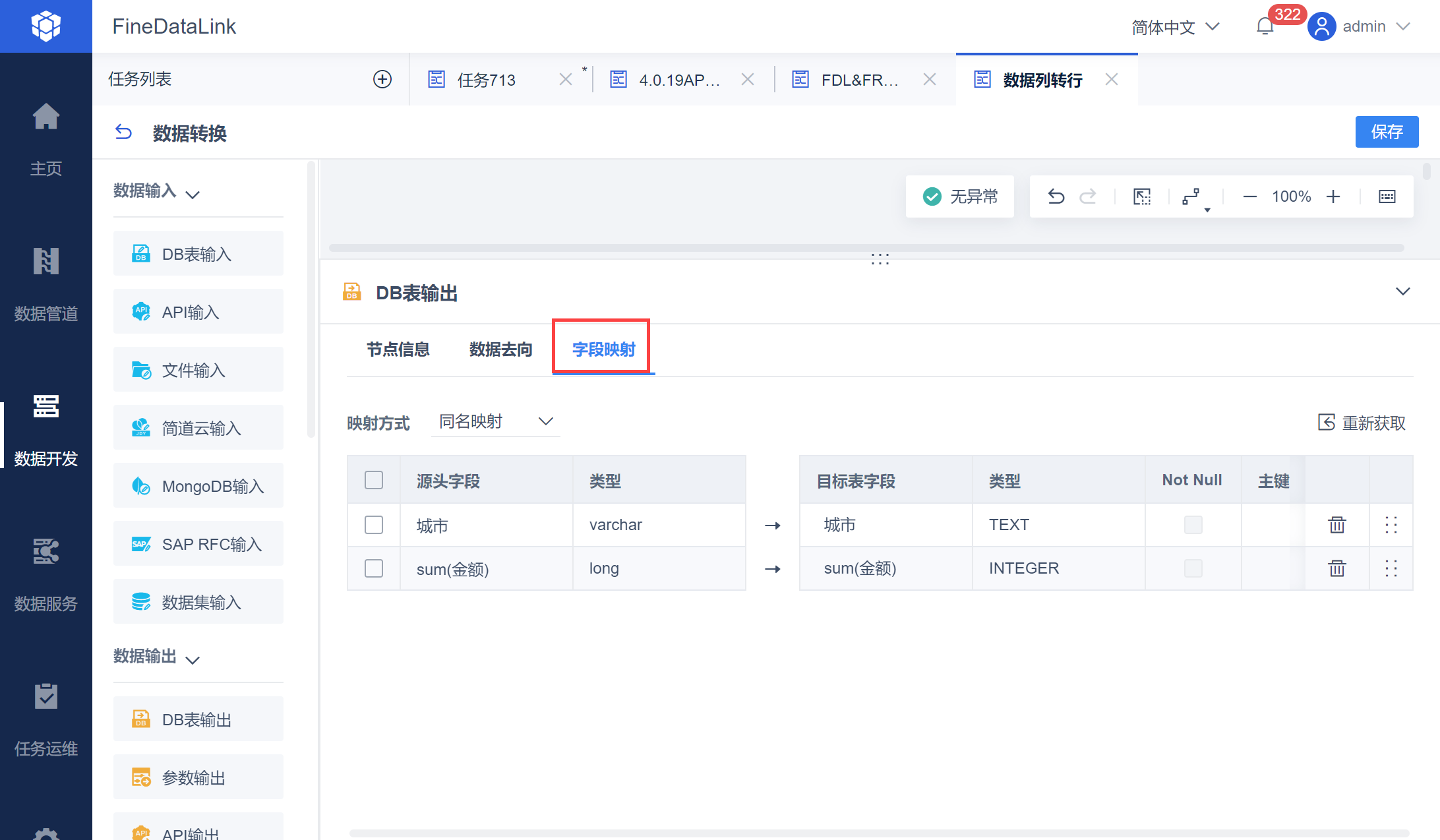 字段映射就是查看或修改源表跟目标表的字段关系,设置目标表数据写入规则。