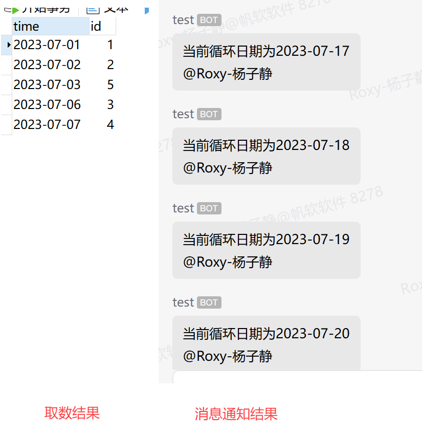 设置消息通知,使用日期序列参数,将日期循环的参数传递通知给指定用户,如下图所示: