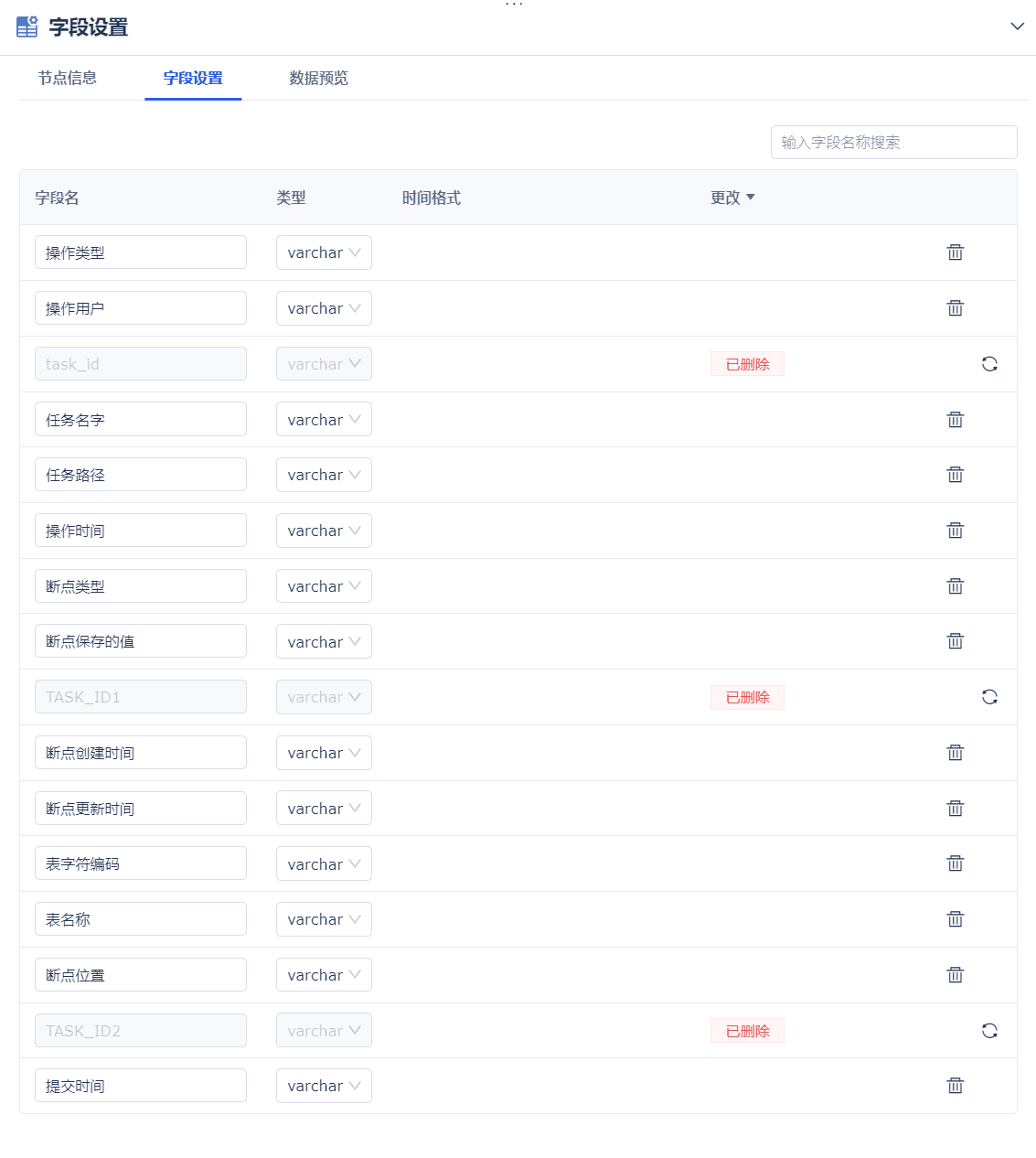 拖入「字段设置」算子,将连接字段 task_id、TASK_ID1、TASK_ID2字段删除。如下图所示: