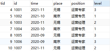 INSERT INTO `User_test` VALUES (null, '1004','2021-10','南京','运营专员','1');
