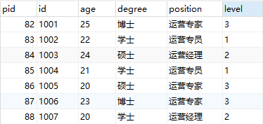 3)数据库 dwTest1 中新建一张表 User_position,作为目标表,主键是 pid,进行比对的字段是 id,如下图所示: