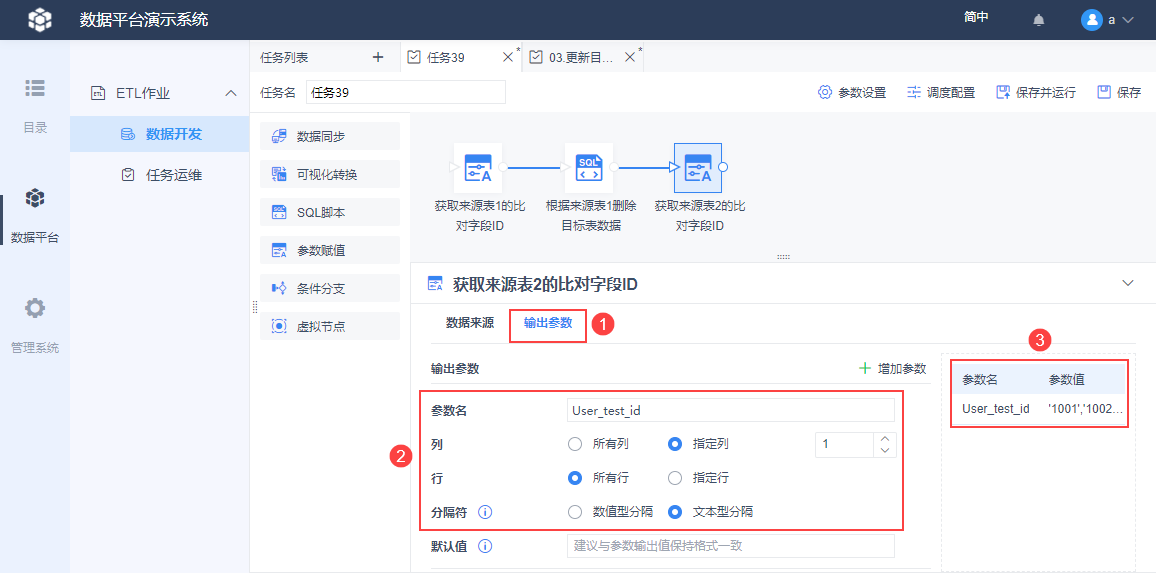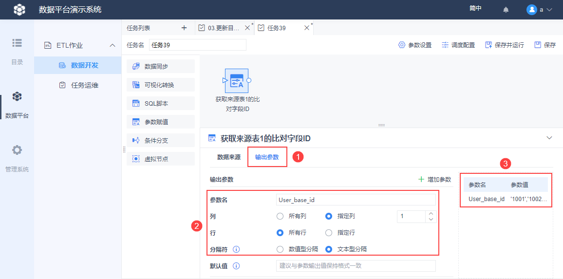 2)将取出来的 ID 输出为参数,如下图所示: