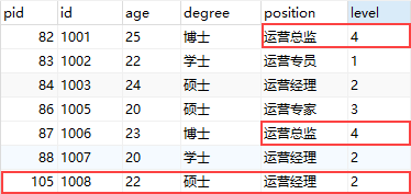 可以看到 1001 和 1006 的 position 和 level 都更新了,1004 那行数据被删除,新增了一条 1008 的数据