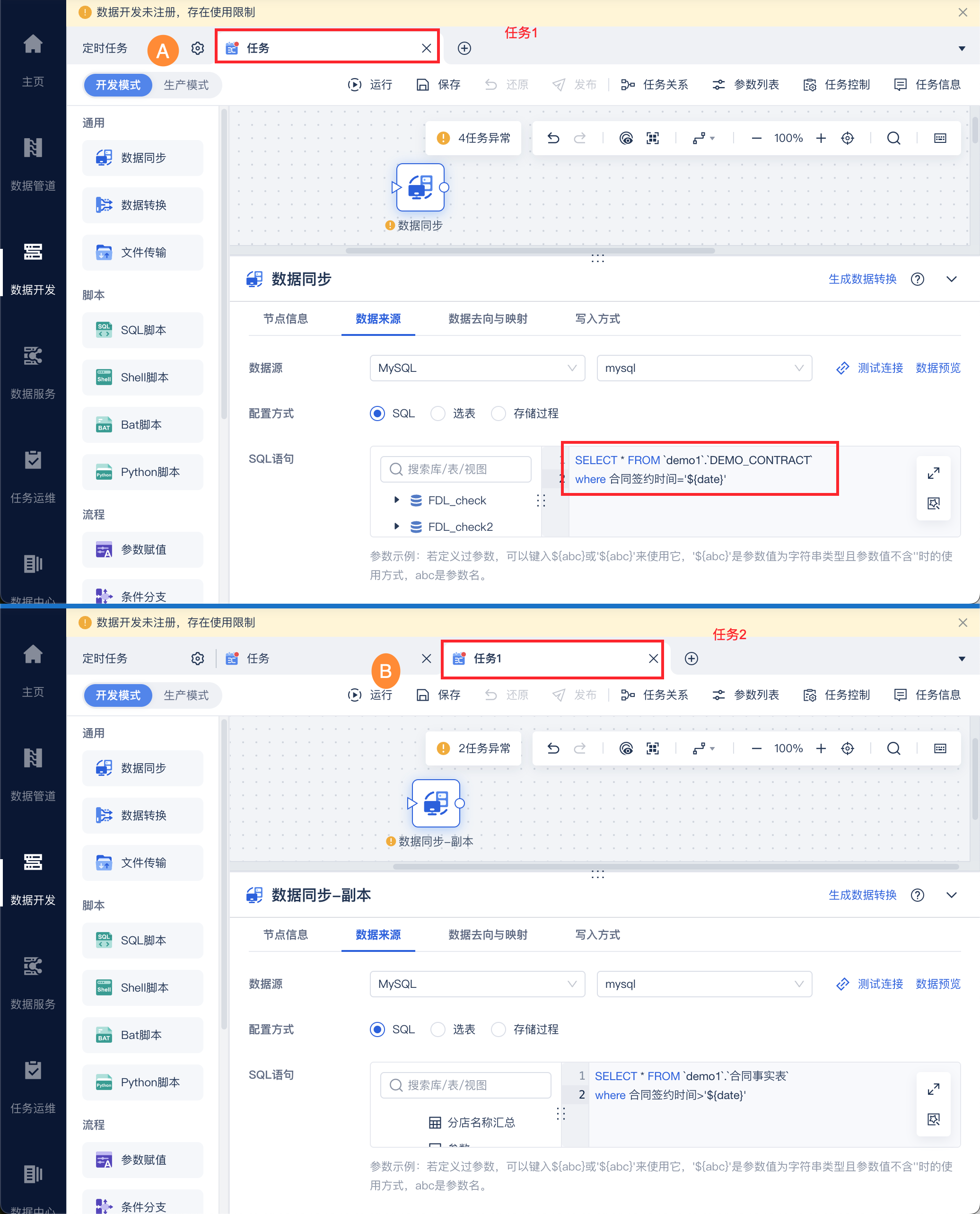 设置好的全局参数即可在数据开发的定时任务中使用,如下图所示: