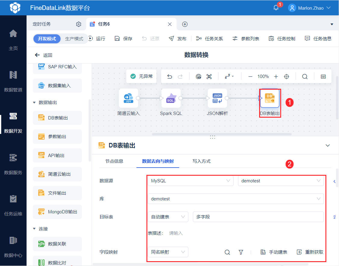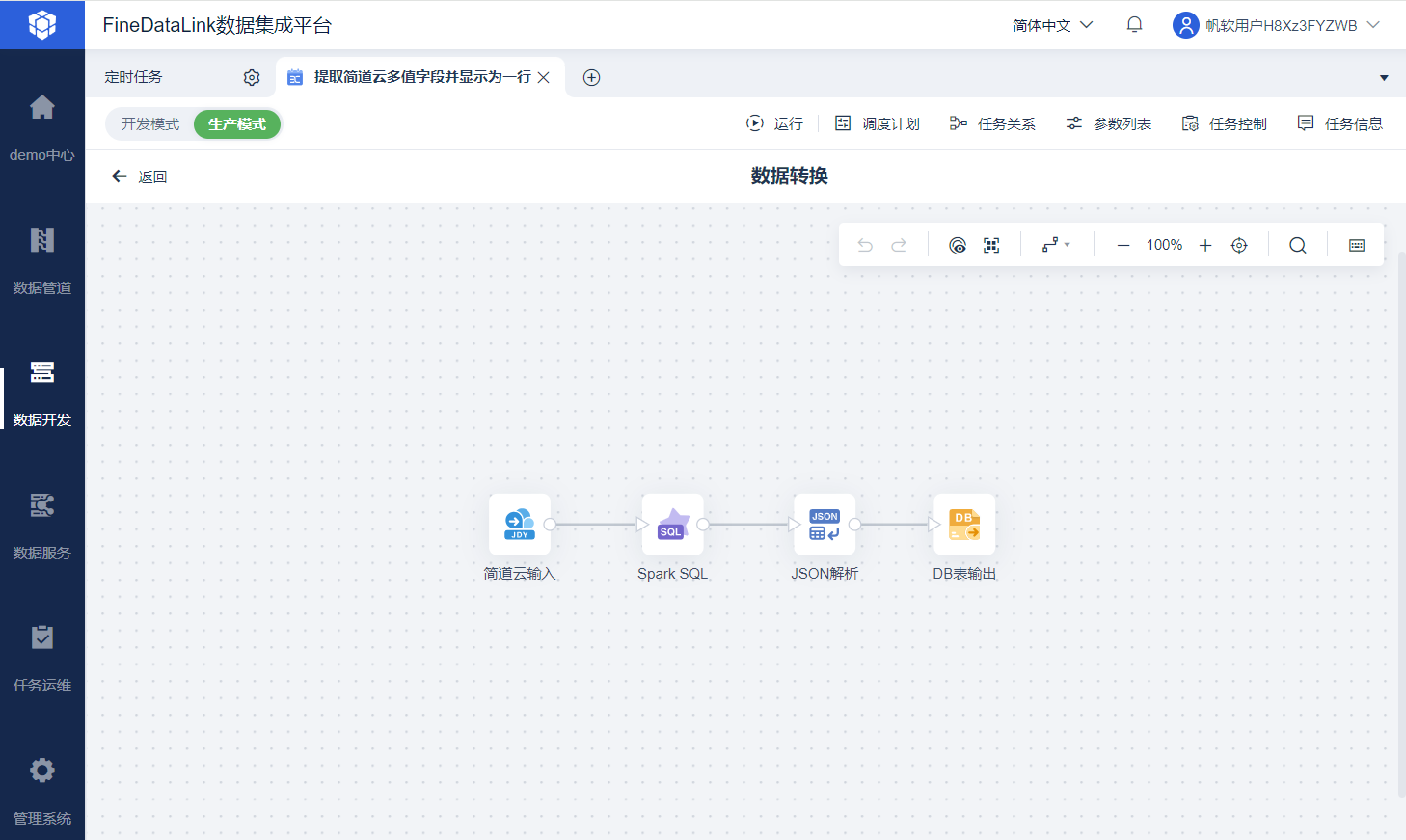 FineDataLink 中的数据处理过程,详情参见:https://demo.finedatalink.com/ 「提取简道云多值字段并显示为一行」。