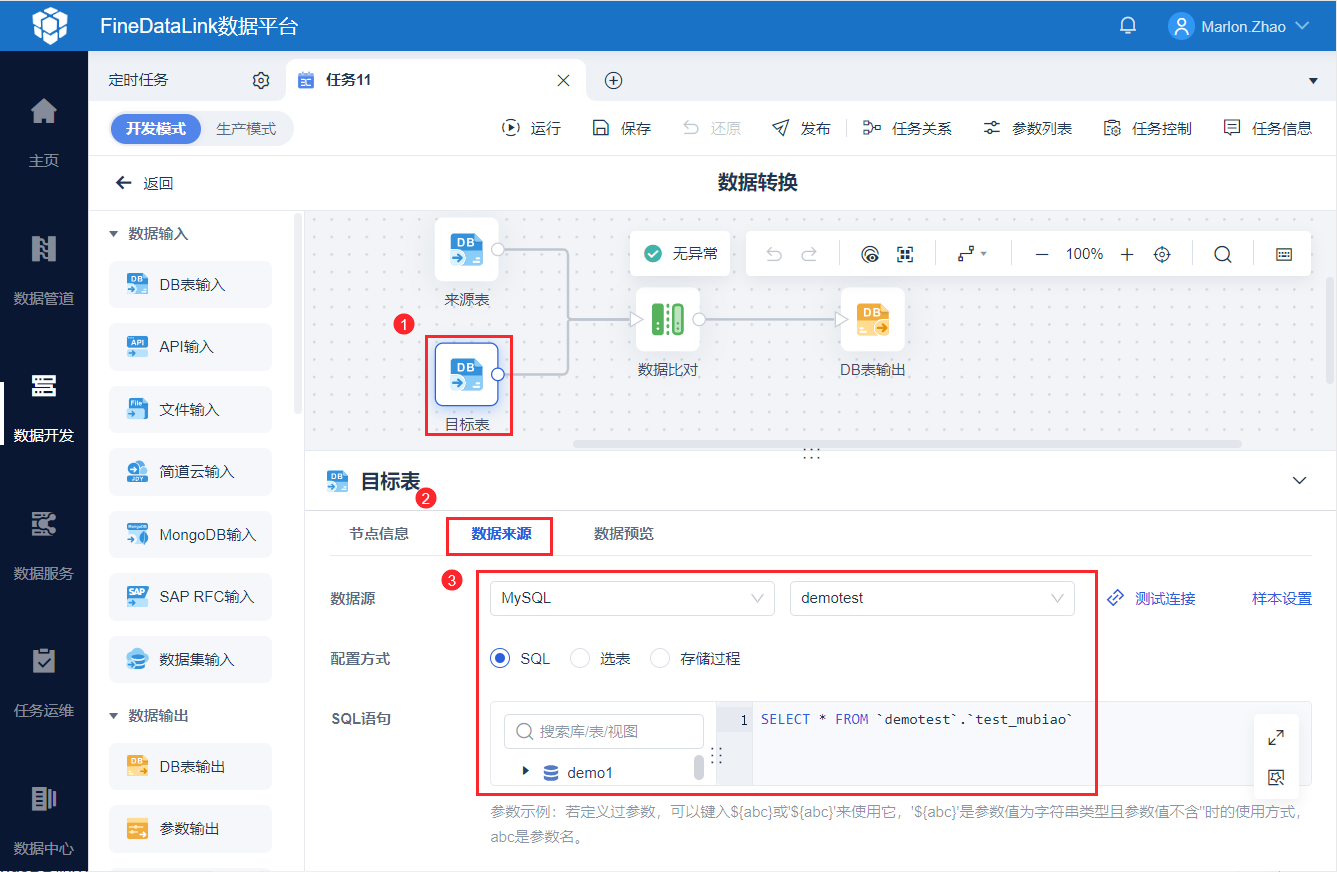 数据经过一系列处理后,可通过「DB表输出」算子输出到目标数据库中。