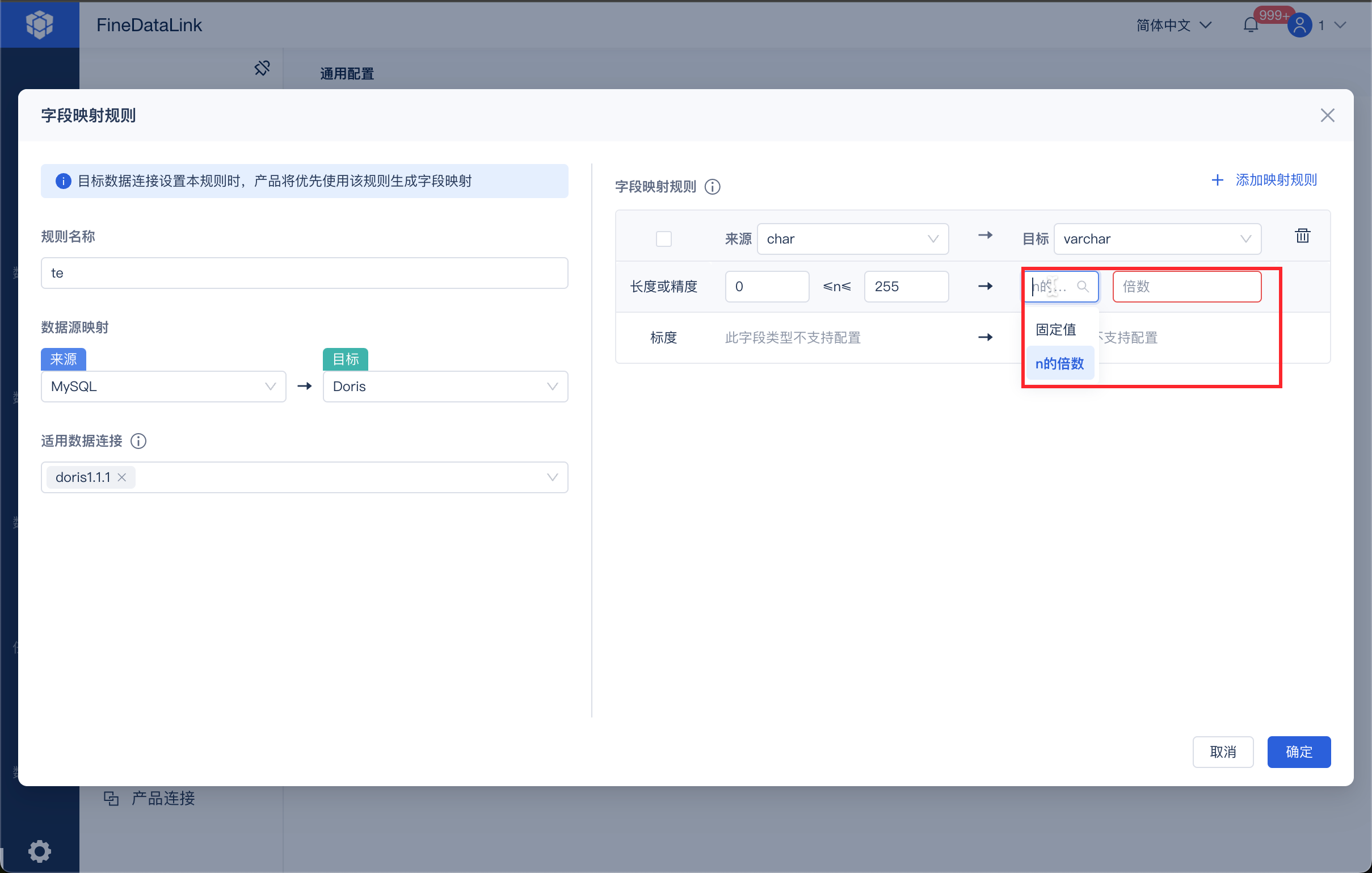 支持用户自定义字段类型映射规则,并配置生效的数据连接。