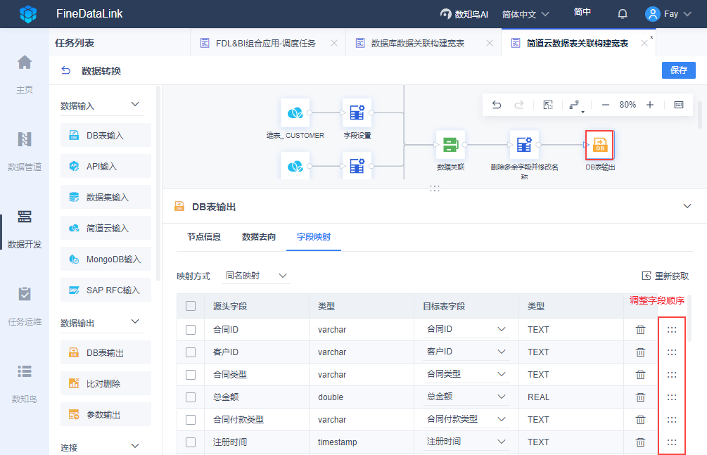 使用 FineDataLink 可视化的操作界面和便捷的功能,将宽表数据直接输出到业务数据库,减少了 BI 中的中间表,解决了自助数据集冗余和更新时间长的问题,提高 FineBI 性能;同时 FineDataLink 处理并输出到数据库中的数据表也可以被其他工具使用。