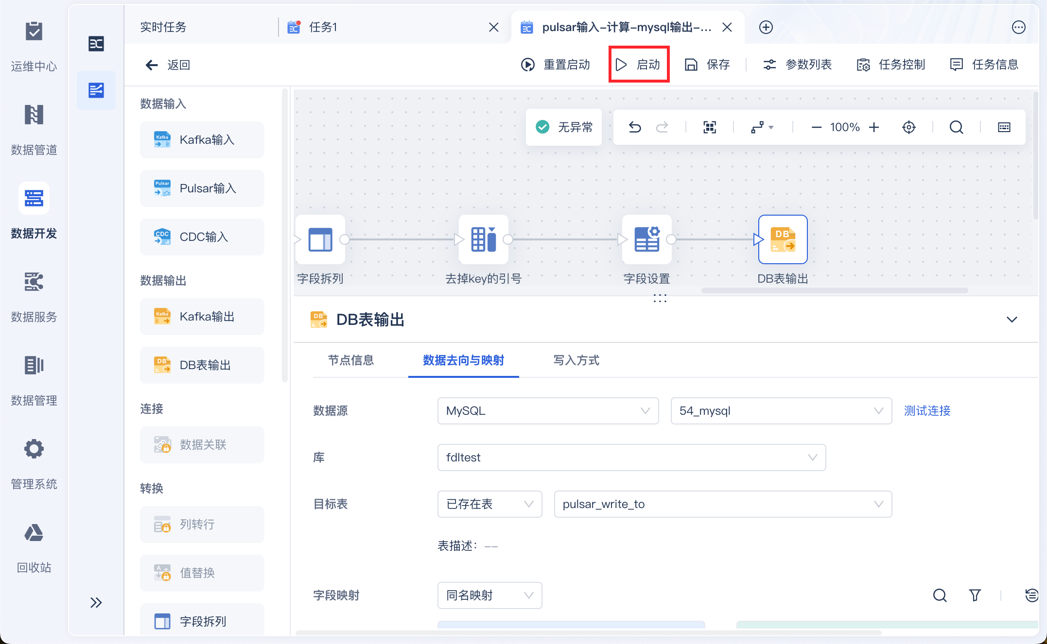 点击启动,即可启动实时任务,如下图所示:
