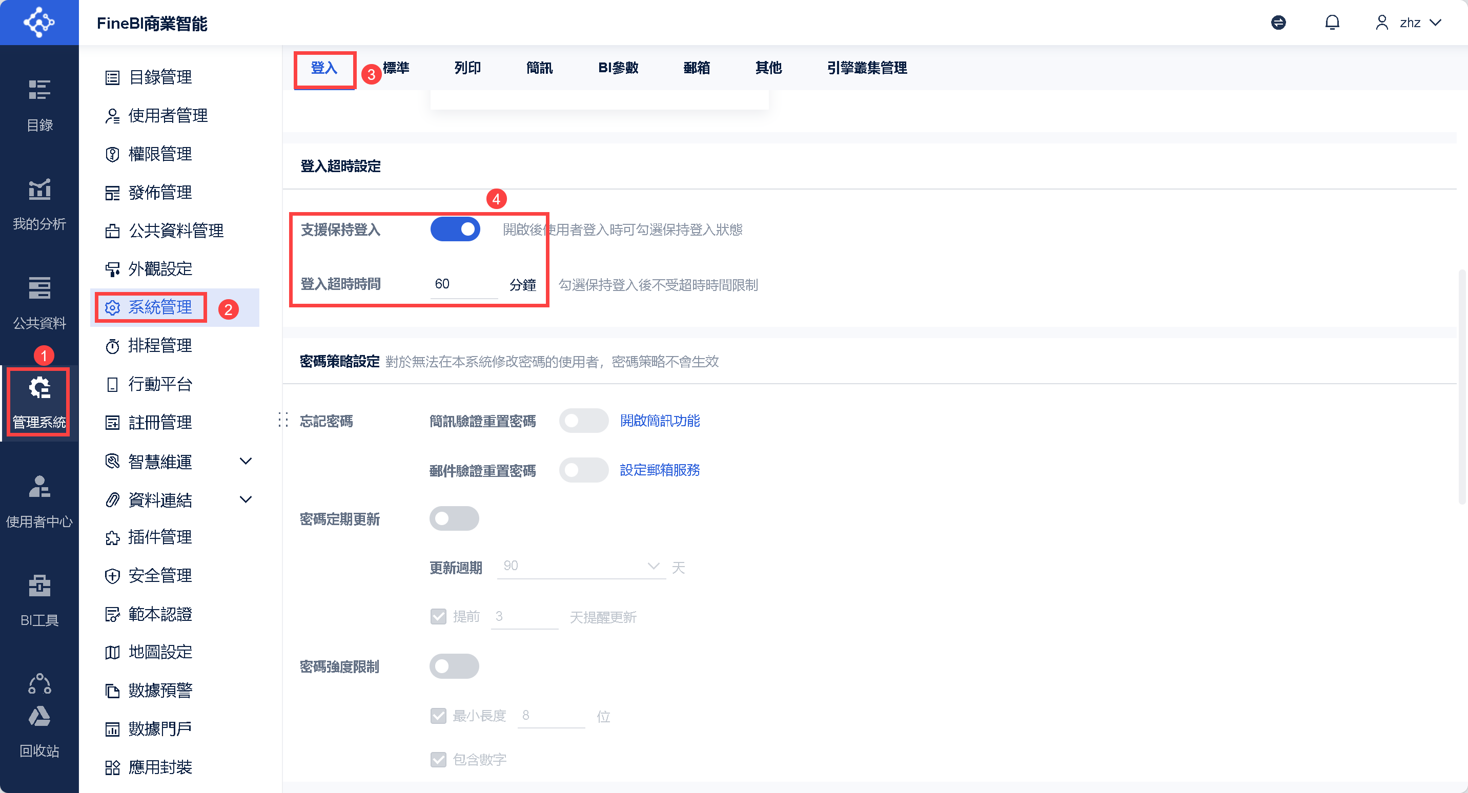 1)FineBI 工程開啟支援保持登入按鈕。詳情請參見:支援保持登入