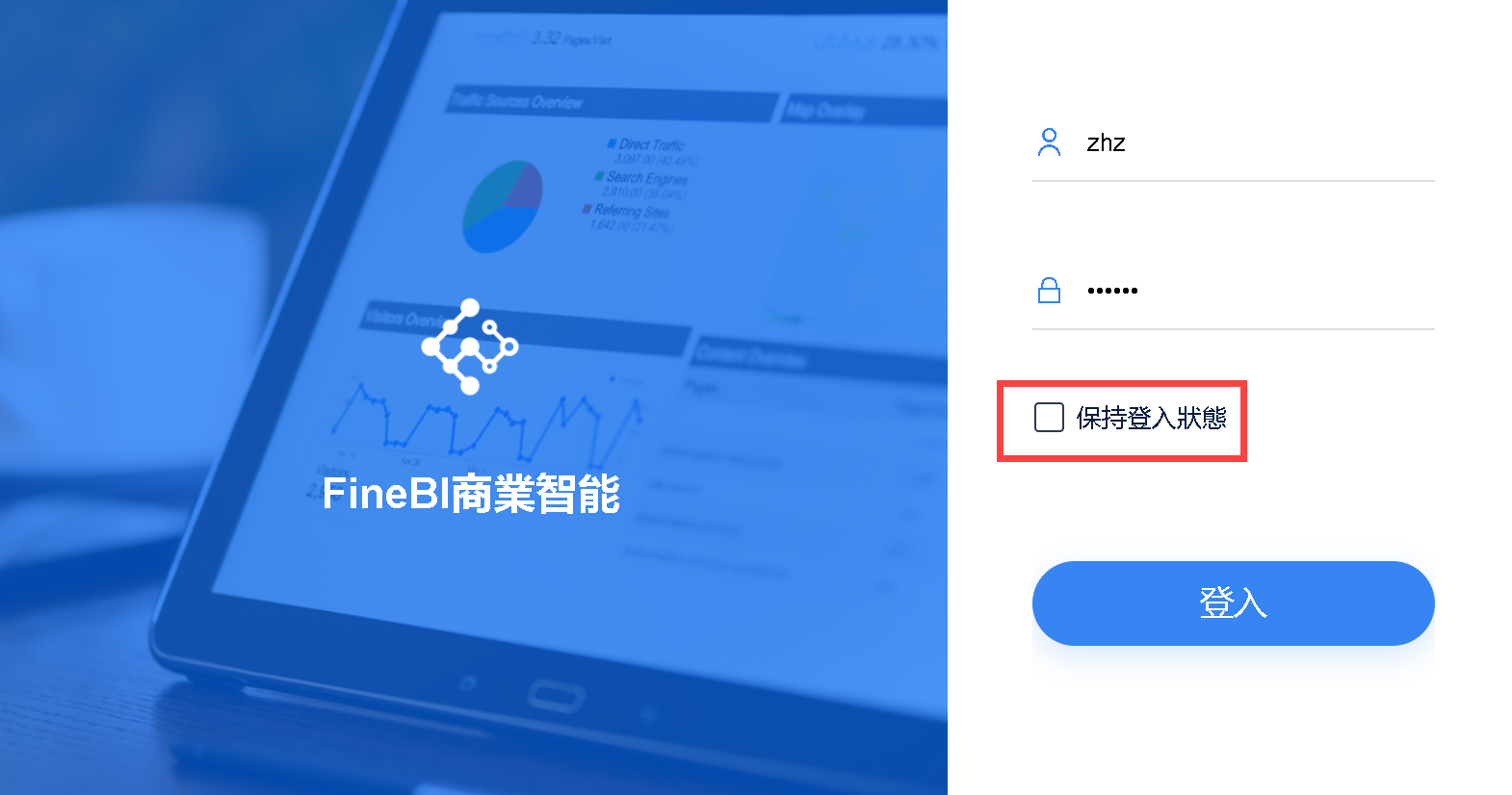 2)使用者登入 FineBI 時,勾選「保持登入狀態」按鈕。