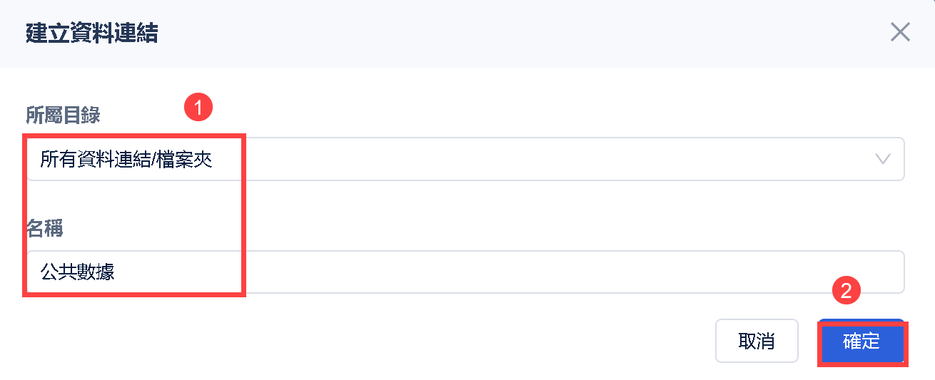 使用者可在「定時任務」下的資料同步、資料集輸入、參數指派中;或者在「資料服務」下使用 BI 公共資料作為資料源。