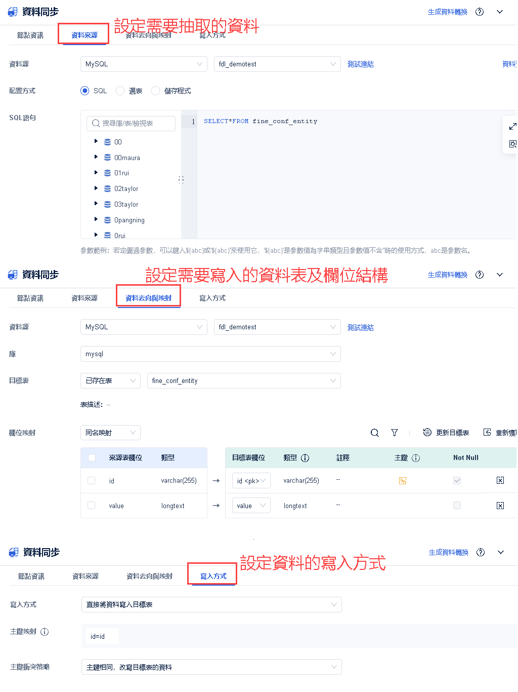 處理好資料後使用匯出步驟將資料匯出至資料庫中。如下圖所示: