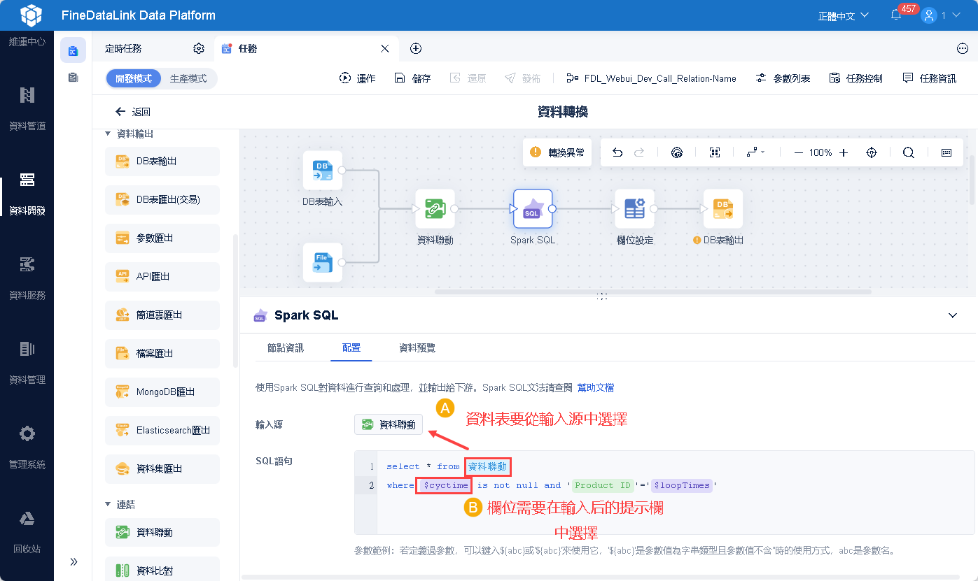 | 3.6.2 | 数据转换概述 新增算子「Spark SQL」算子,可實現較靈活的資料轉換功能 |