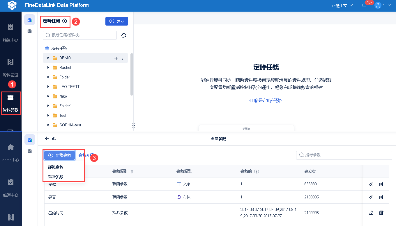支援設定全局參數,該參數可在多個定時任務中使用。如下圖所示: