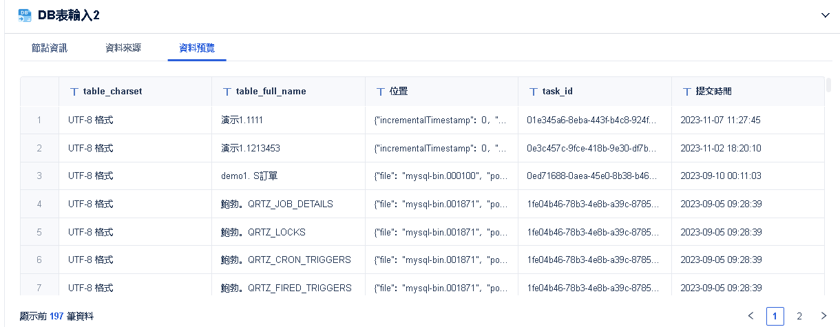 | 表字元編碼 | fine_dp_pipeline_schema | TABLE_CHARSET | TASK_ID |
