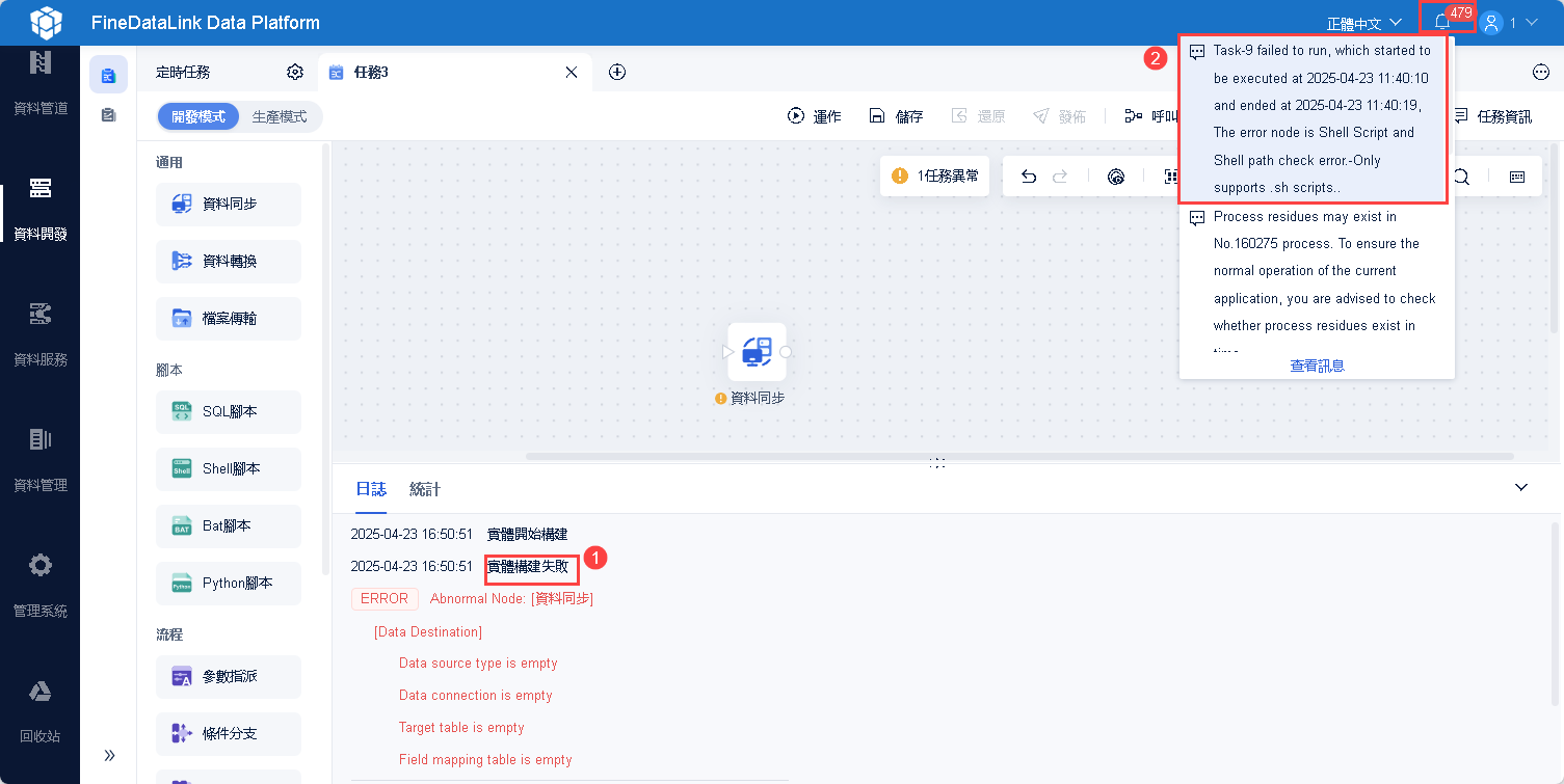 標題:資料開發任務髒資料通知 【資訊平台】您好,資料開發任務「#taskname#」中,產生髒資料,請前往「任務維運」-「定時任務」模組,在對應任務日誌中查看詳情。 | 標題:資料開發任務髒資料通知 資料開發任務「#taskname#」中,產生髒資料,原因為#errorReason#,請前往「任務維運」-「定時任務」模組,在對應任務日誌中查看詳情。