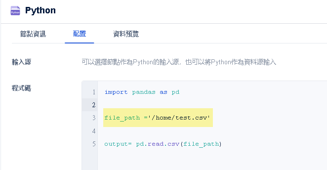 4)使用「Python 算子」載入檔案時,支援絕對路徑/相對路徑載入檔案。