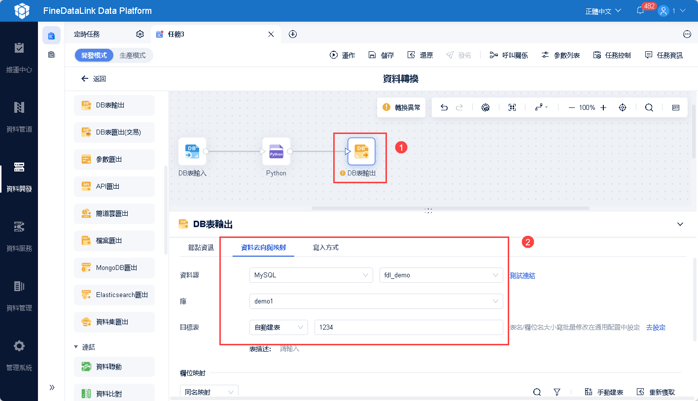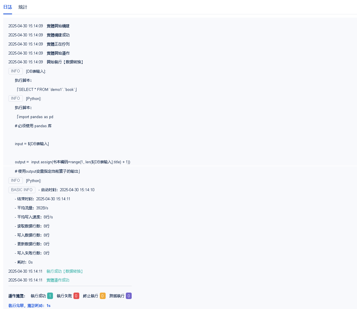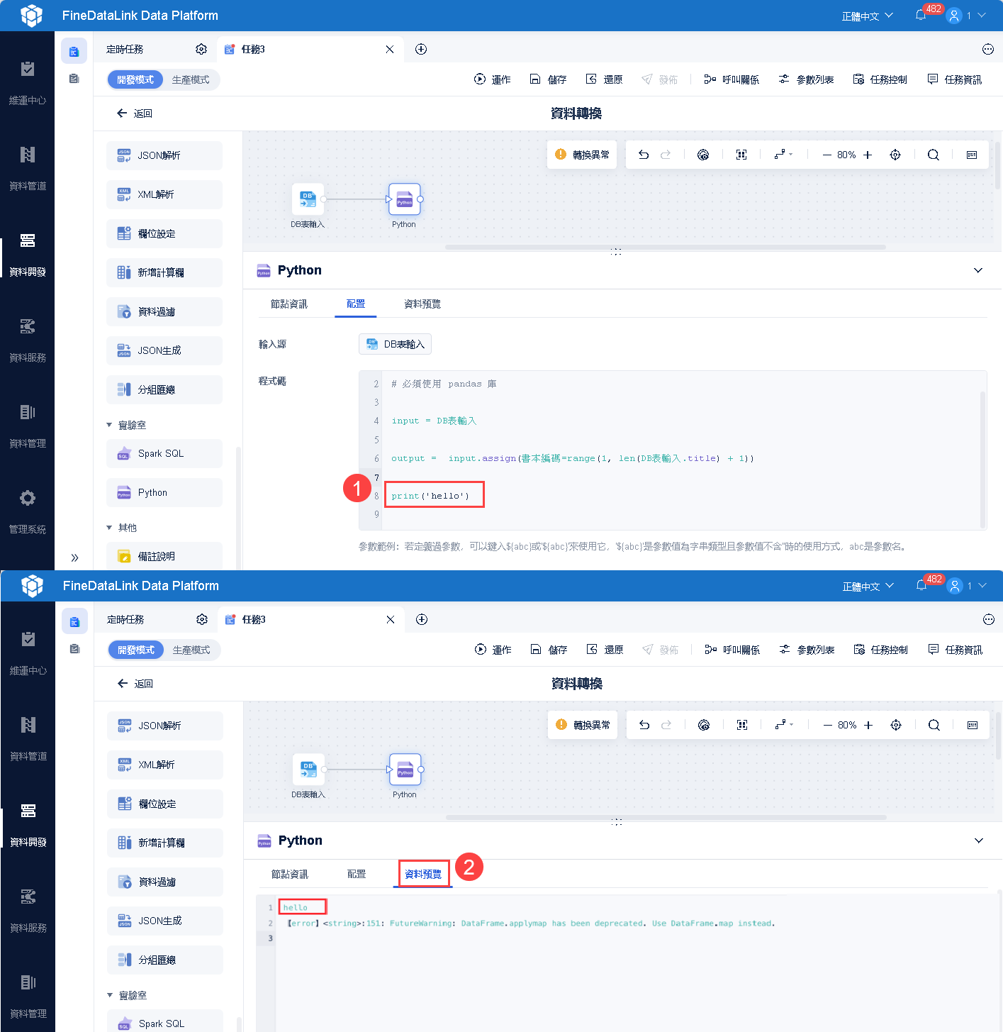 demo任務詳情參見:https://demo.finedatalink.com/ 「資料轉換-Python 算子」
