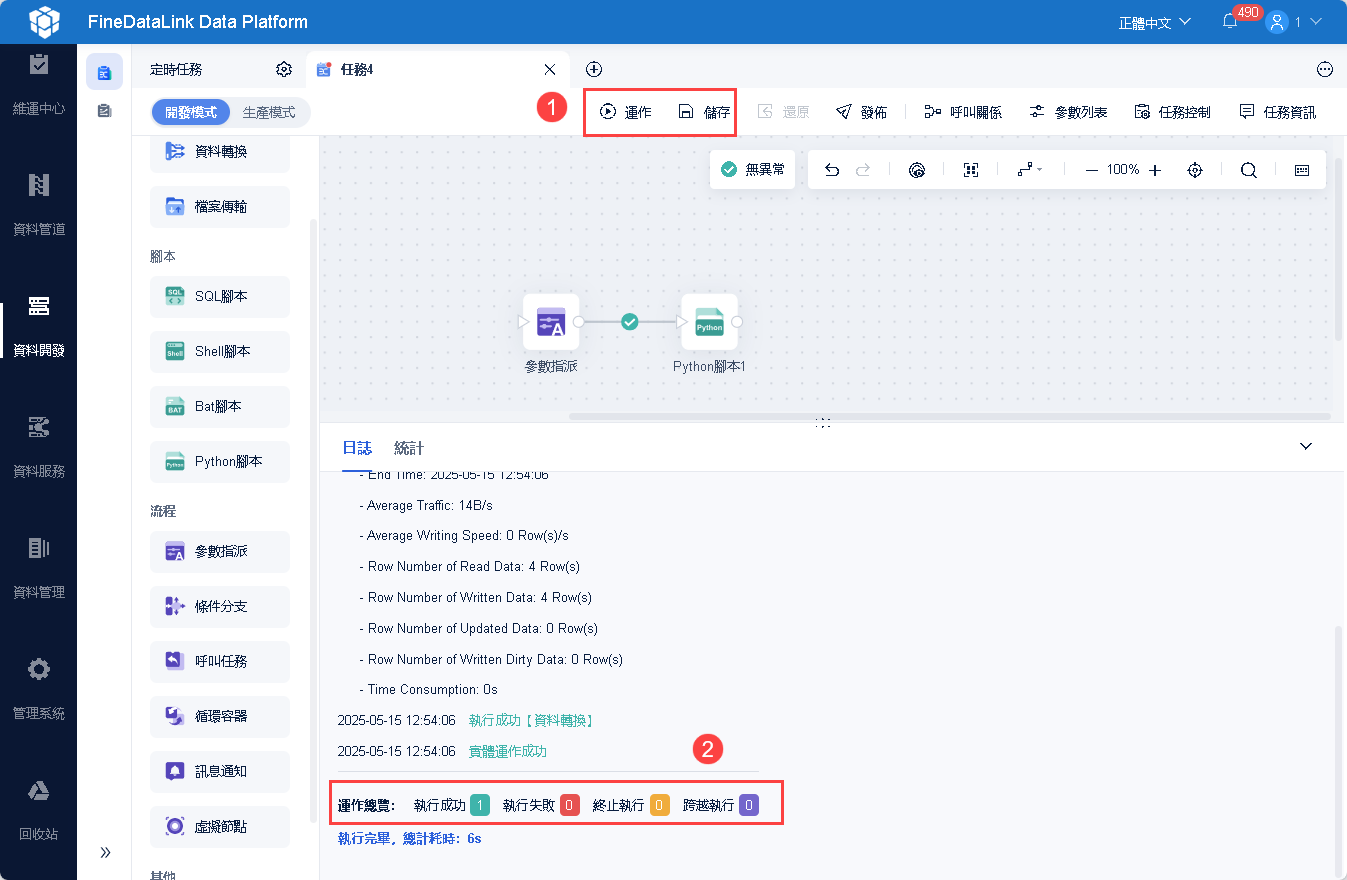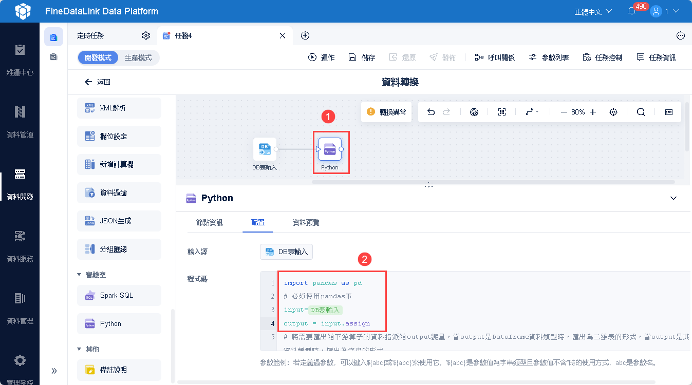 配置 Python 環境後,在「Python算子」中編寫 Python 程式碼實現