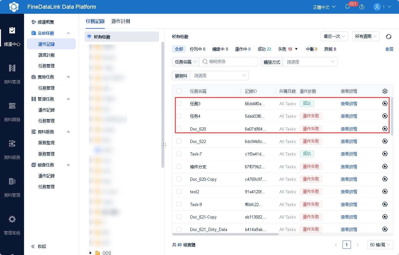 | 任務維運 | 定時任務維運、管道任務維運、資料服務維運 | 對任務進行集中管理和運作監視,提供任務的總覽 |