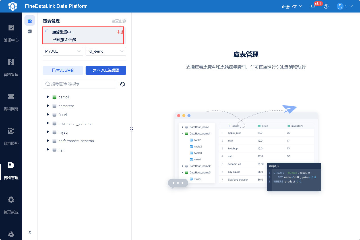 | 4.2.6.4 | 新增「重置血緣」功能,支援以資料連結為維度重新整理血緣 優化: