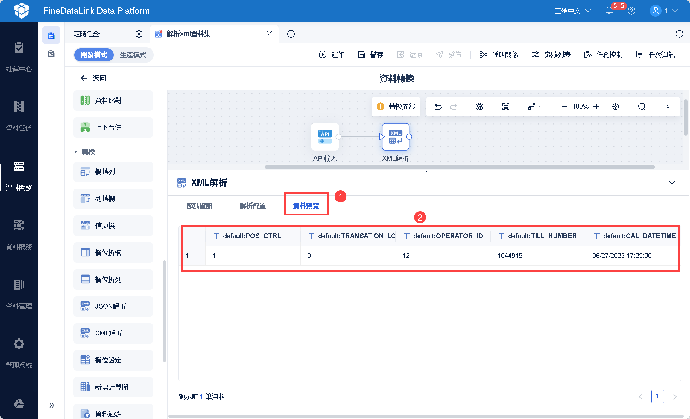 FineDataLink 中的資料處理程式,詳情參見:https://demo.finedatalink.com/ 「解析XML檔案資料-」。