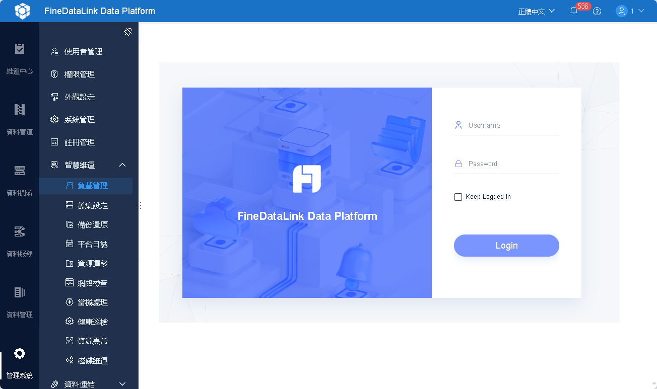 1)管理者登入 FineDataLink 資料平台,查看「管理系統>智慧維運>負載管理>實時負載」的三張圖片,不顯示則未連結。