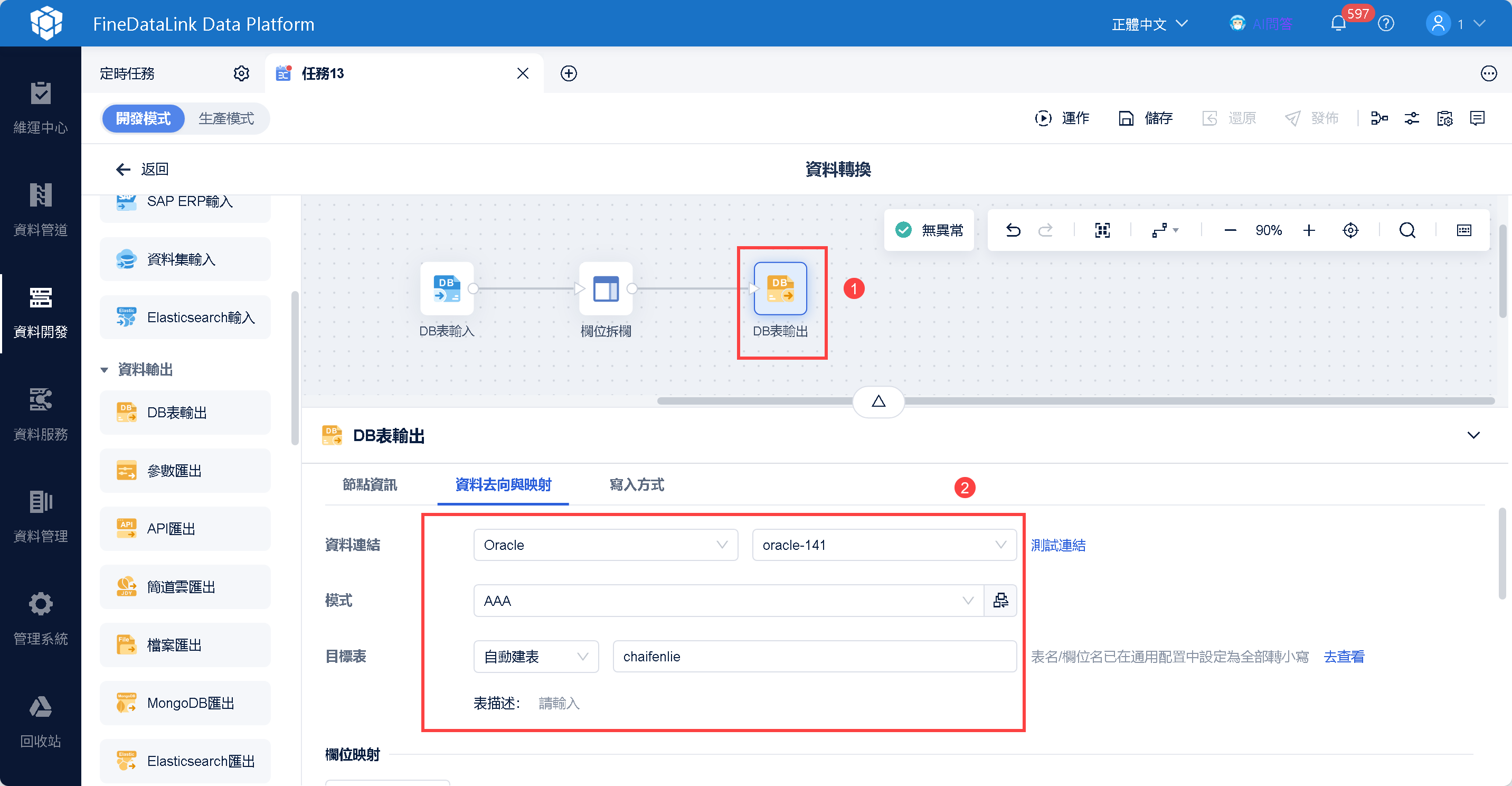 1)拖入「DB表匯出」算子,將處理好的資料匯出。如下圖所示: