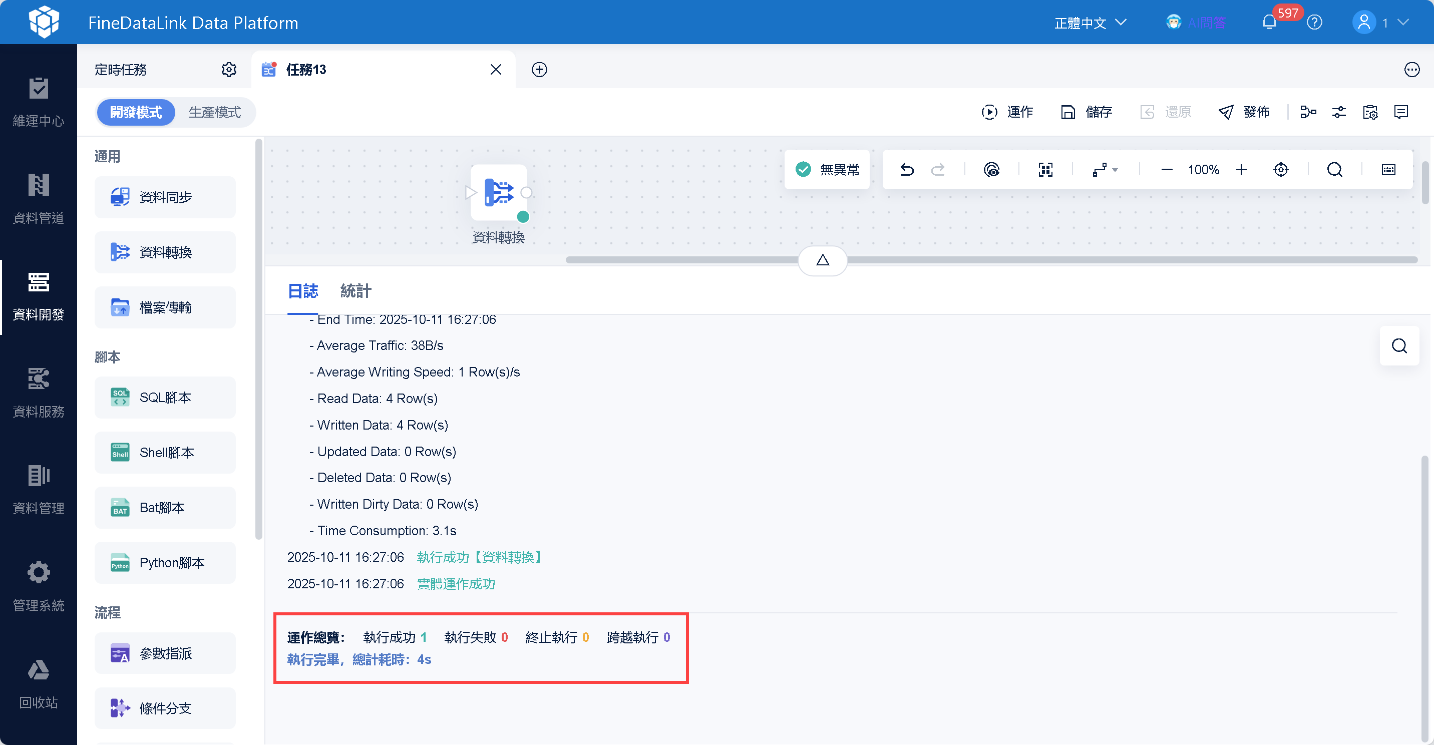 1)點選「儲存並運作」按鈕,任務執行成功後。如下圖所示: