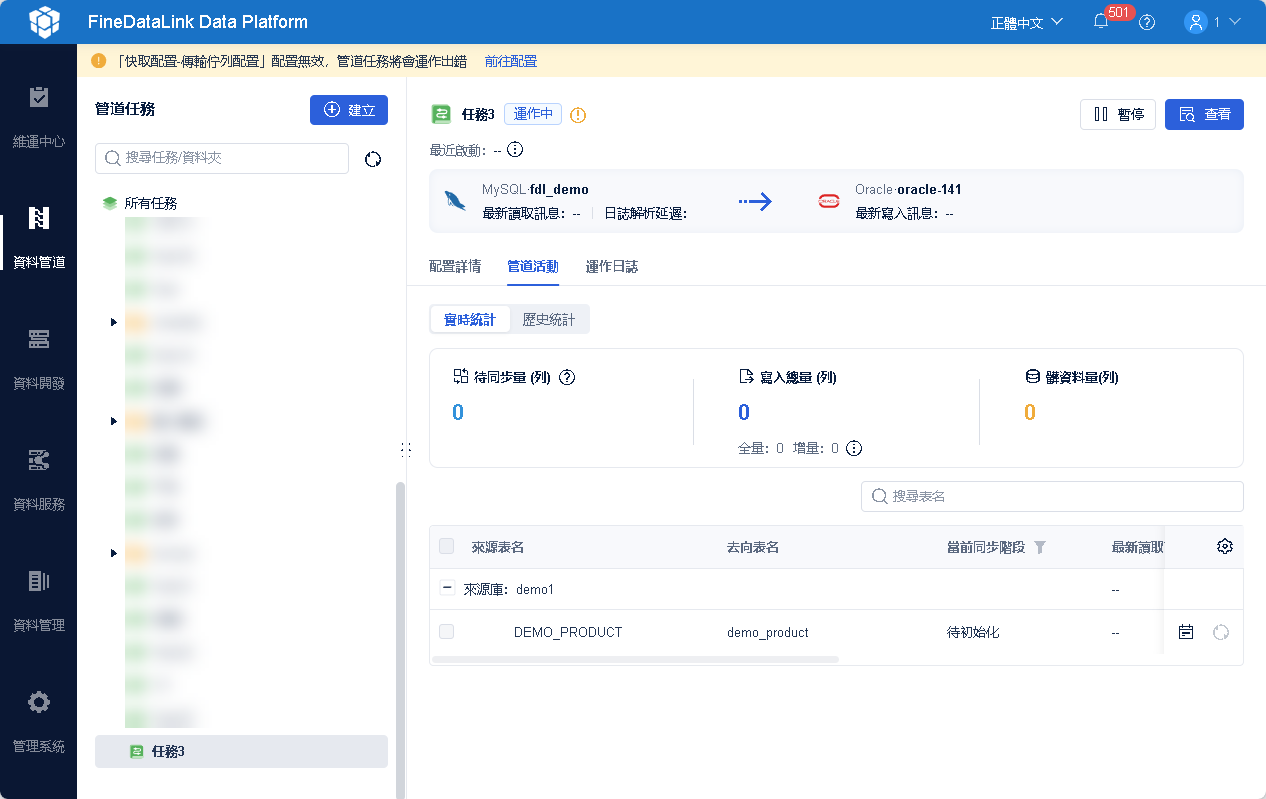 提示:1)4.2.7.3 之前版本,管道任務的所有目標表都展示出來。