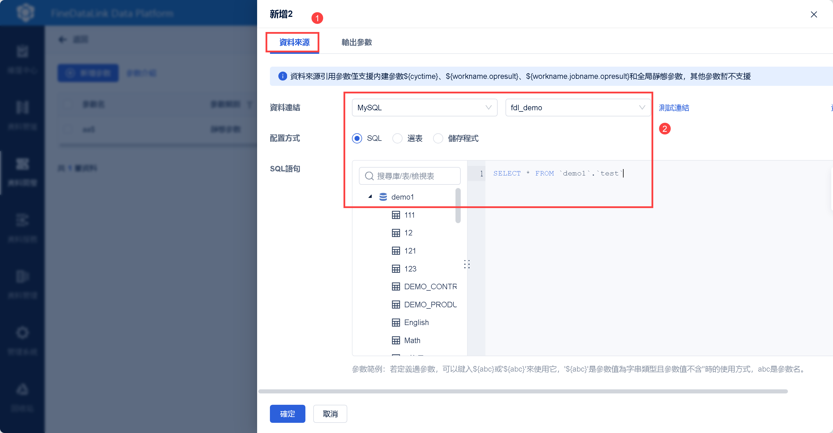 詳情請參見:如何配置並使用參數、参数在FDL中的典型应用场景