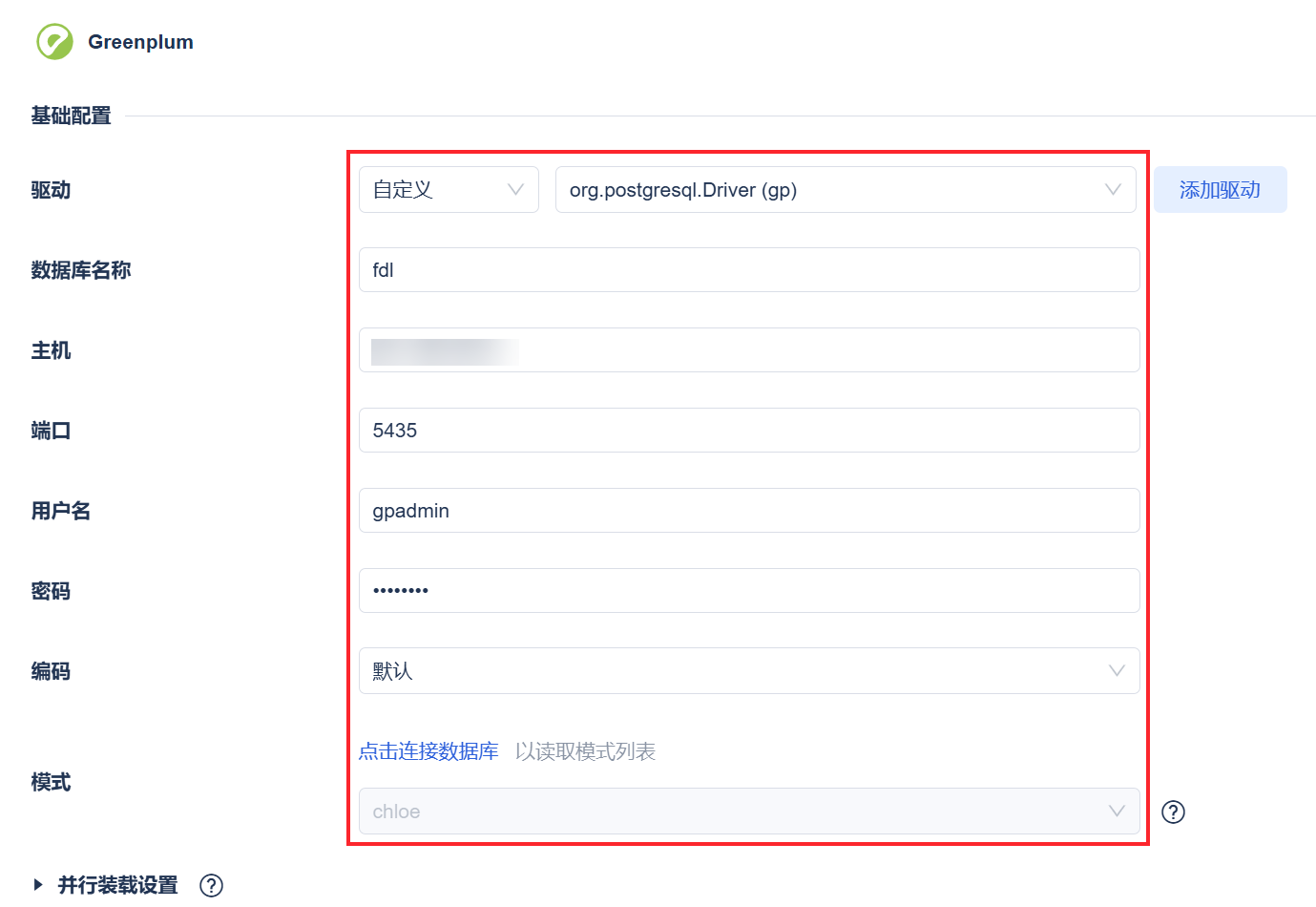 若需要向 Greenplum 数据库写入数据,需要配置「并行装载设置」项。如下图所示: