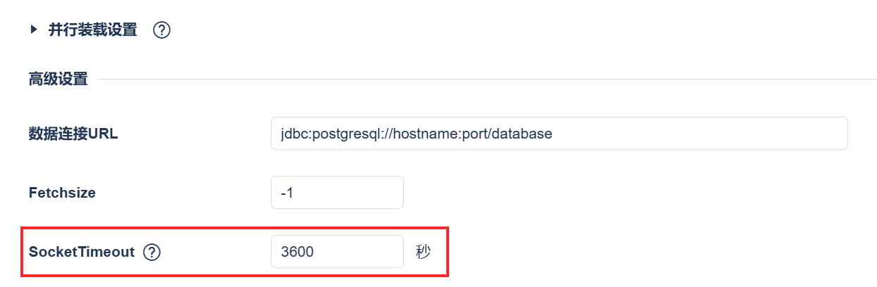 配置当前数据连接的套接字超时,单位为秒,默认值为 3600。