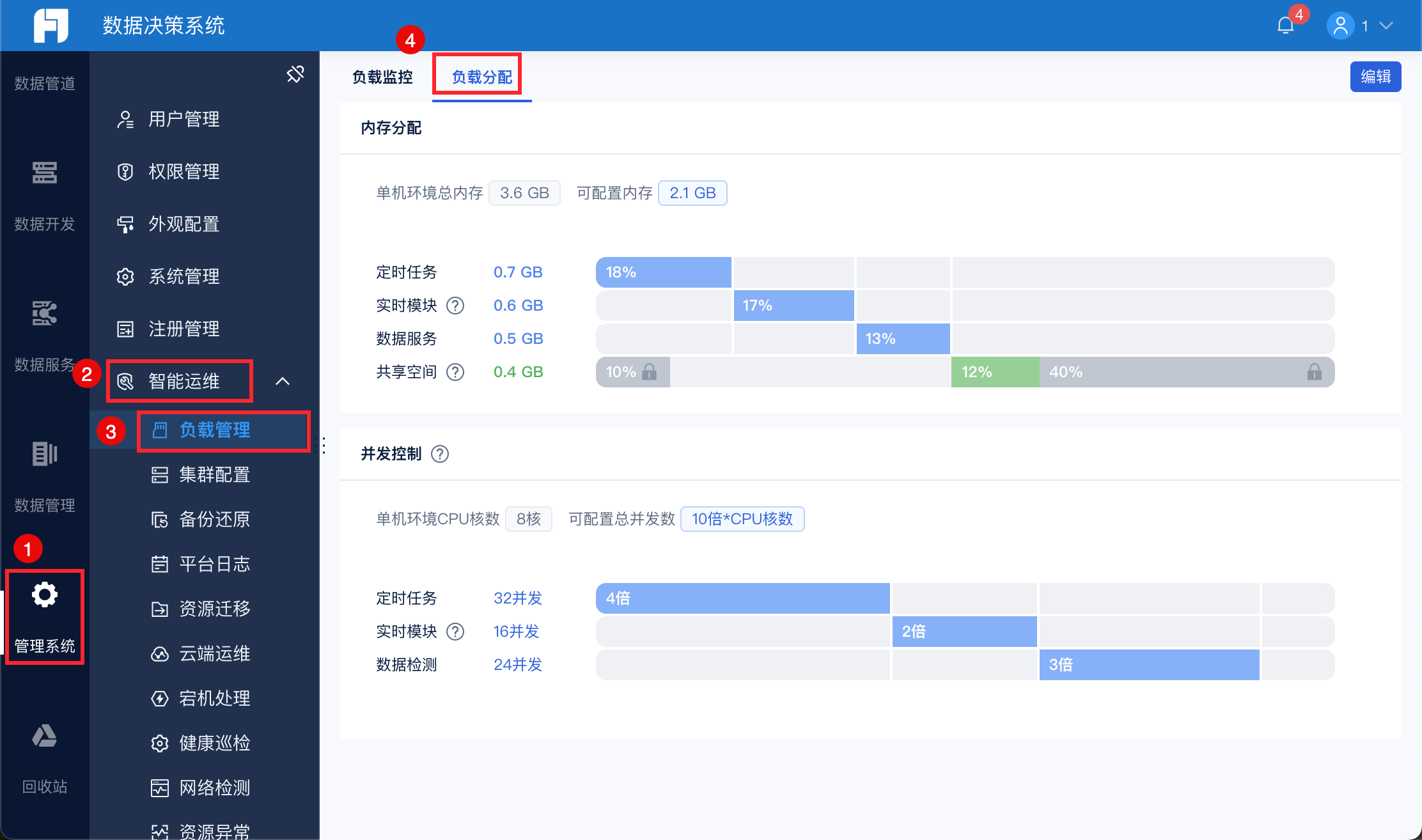则可以在负载分配下按照报错提示调整内存或者并发,如下图所示: