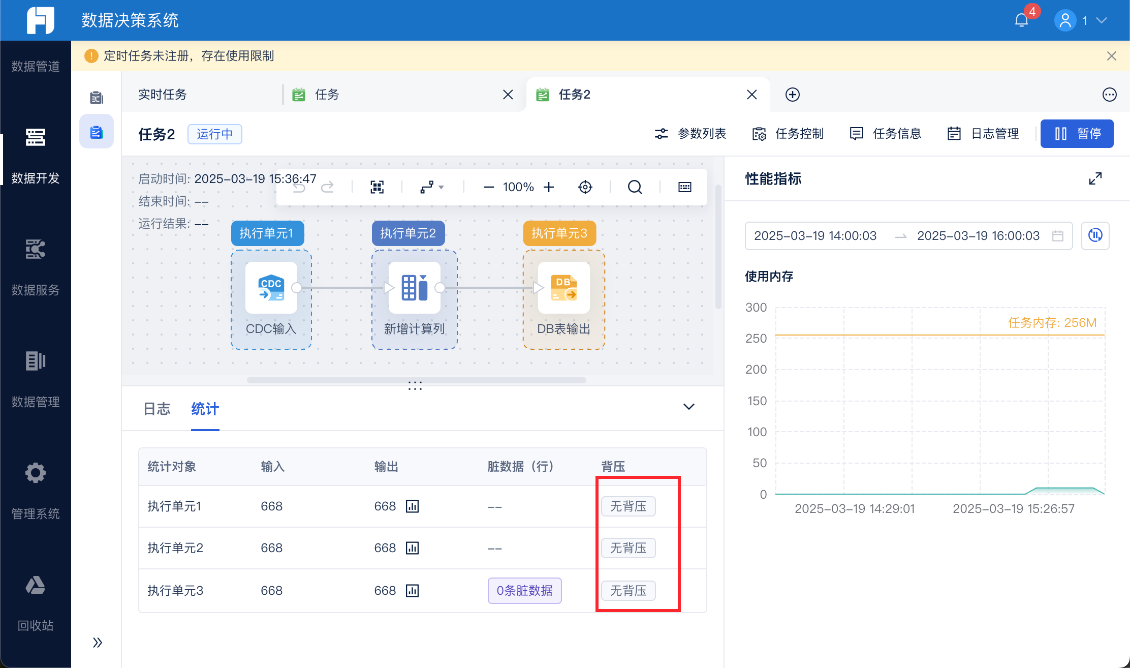 3)当该执行单元本身的背压也比较大时,说明可能是下游执行单元的处理速度较慢。