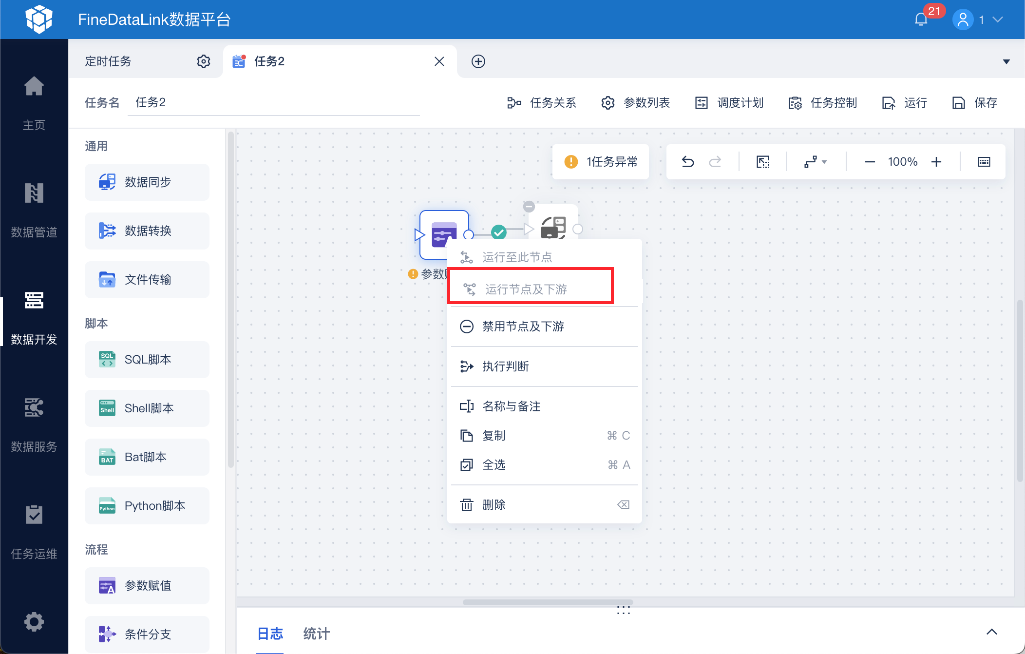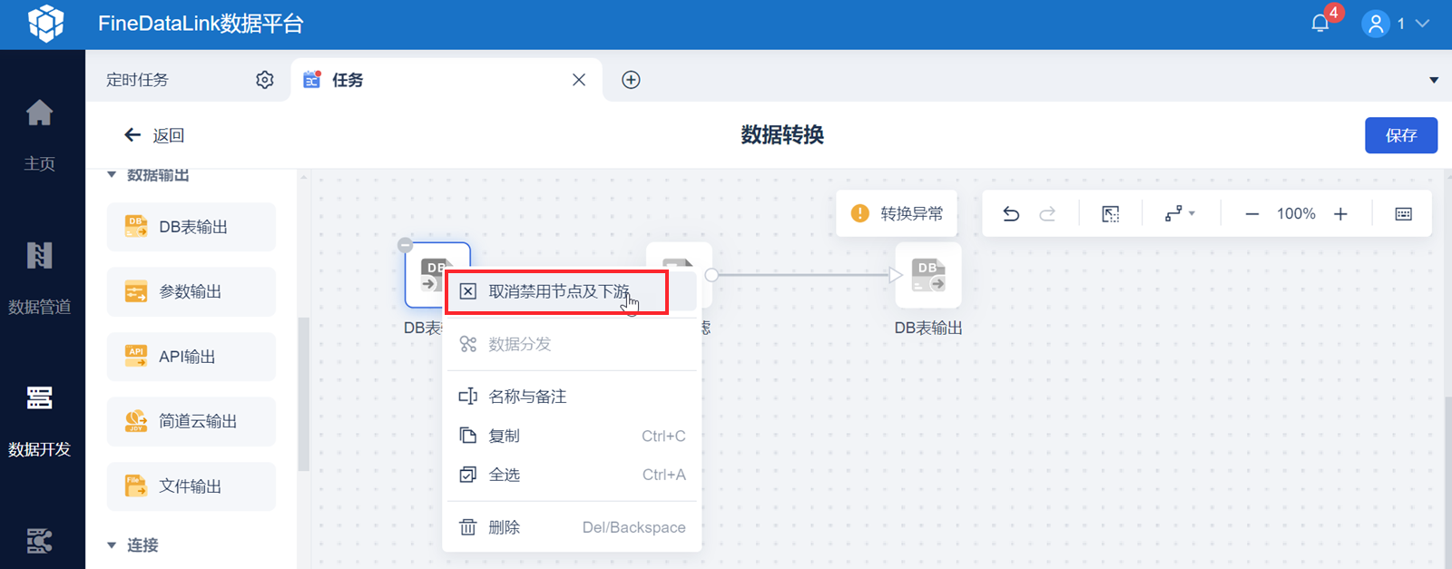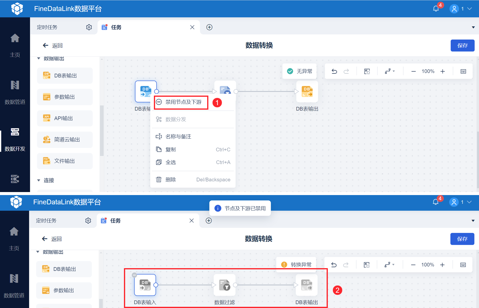 1)「数据转换」节点中,支持禁用该算子及下游算子。如下图所示: