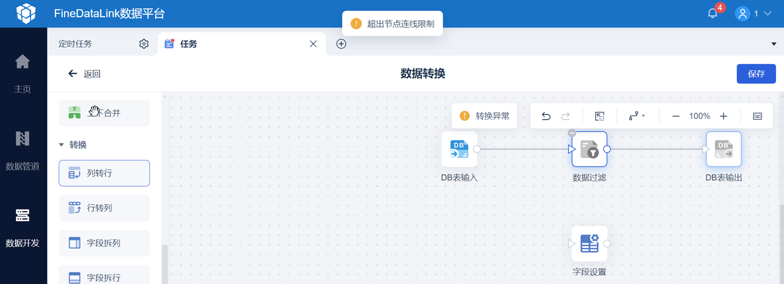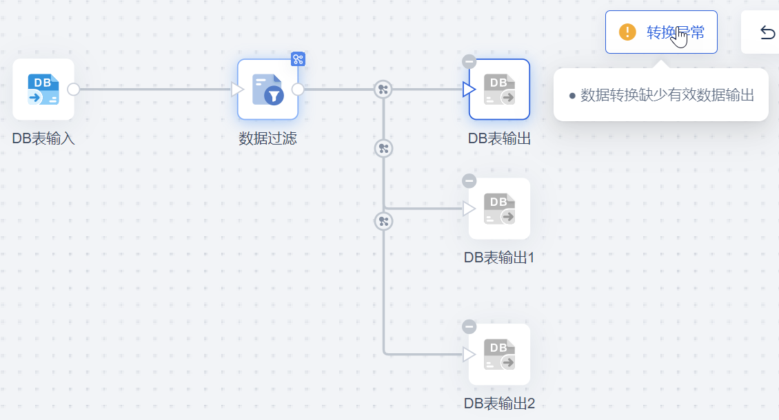• 若所有输出算子都被禁用,数据转换节点将报错: