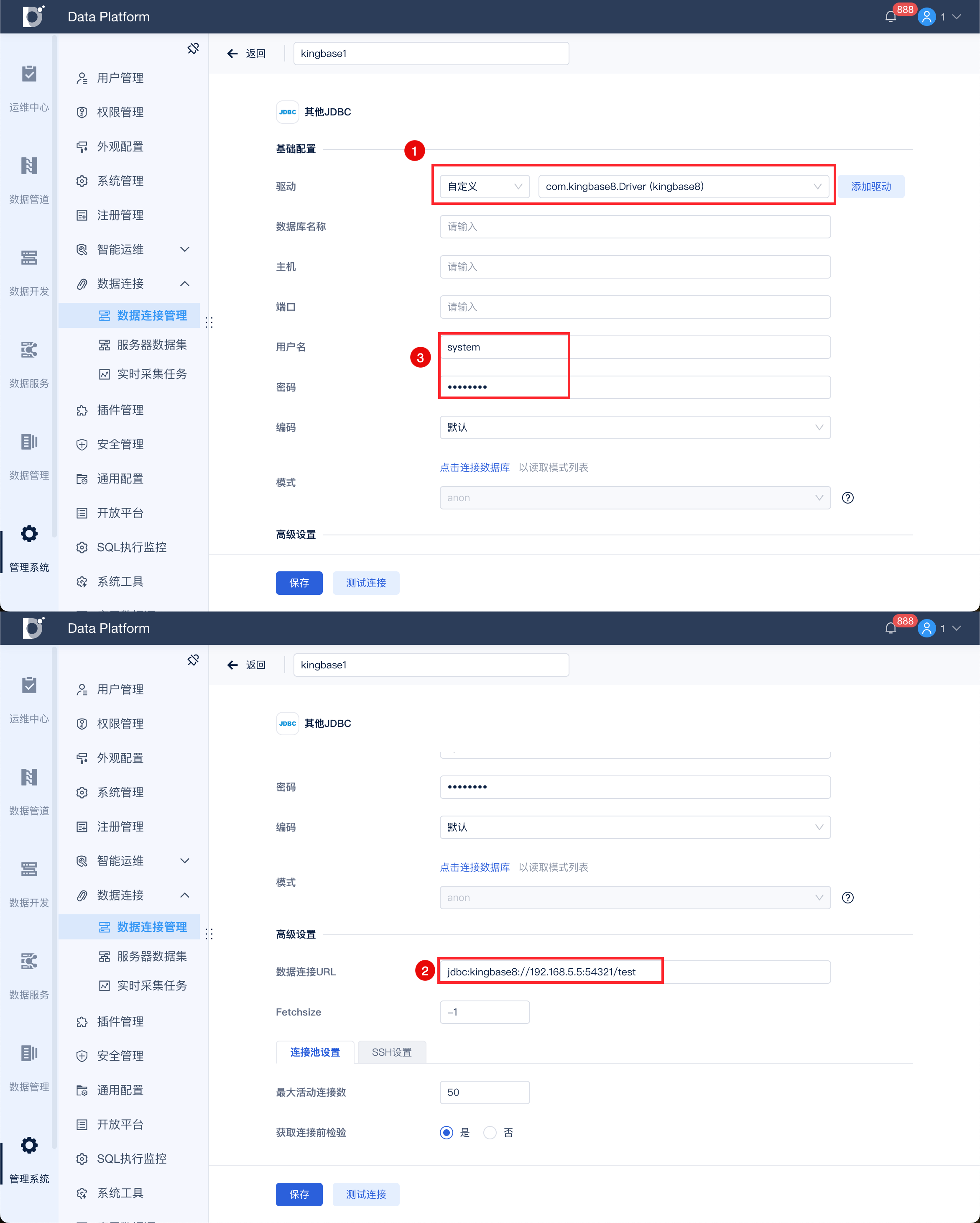 :配置人大金仓KingBaseES PostgreSQL模式数据源 返回文档