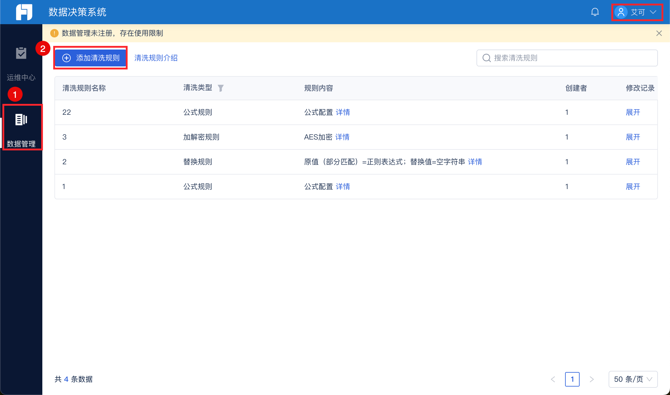 管理员希望能为普通用户分配「数据清洗」中指定数据清洗规则的查看和编辑。