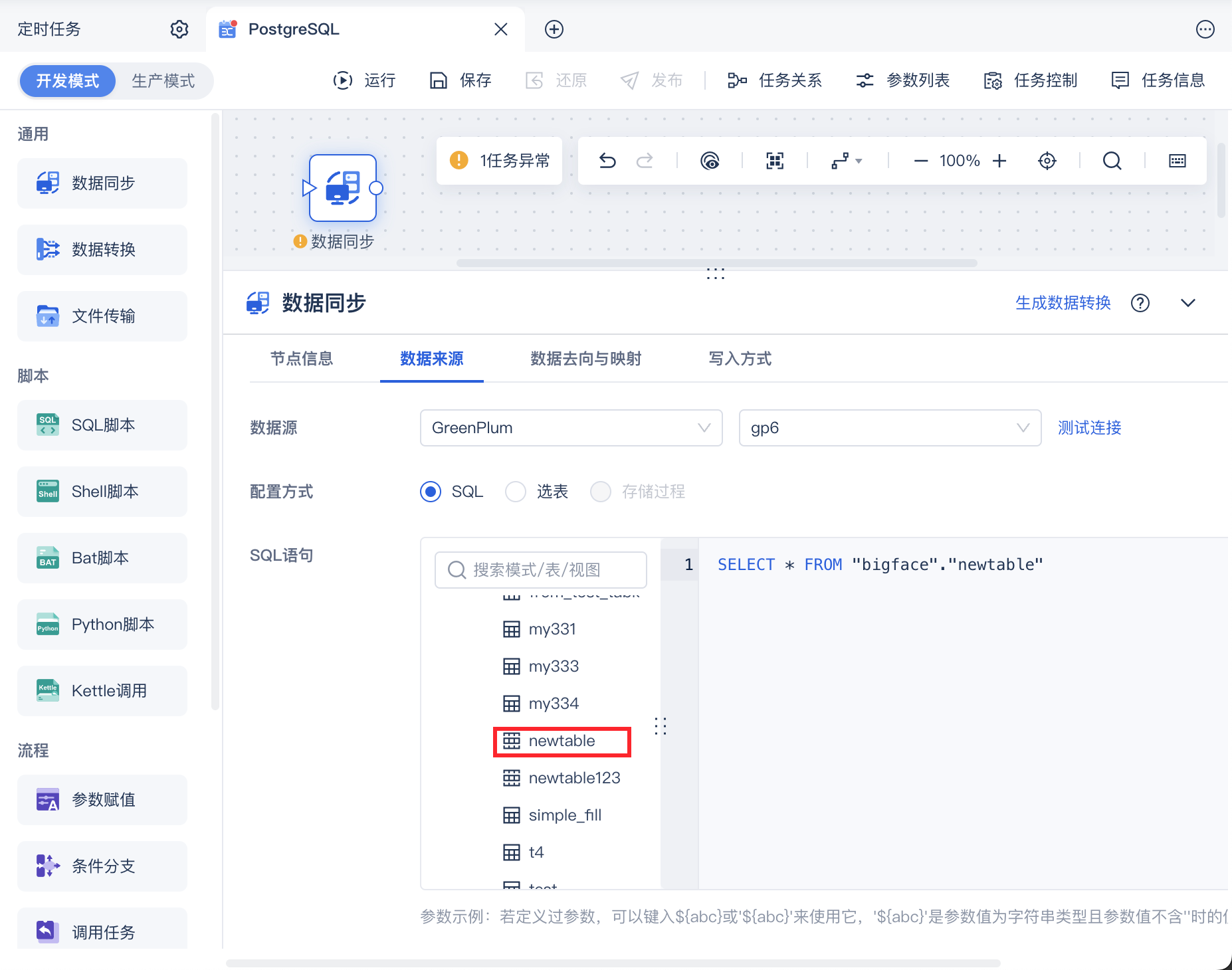 2)数据管道任务中支持写入至 Greenplum 数据库。管道任务配置请参见:数据管道概述