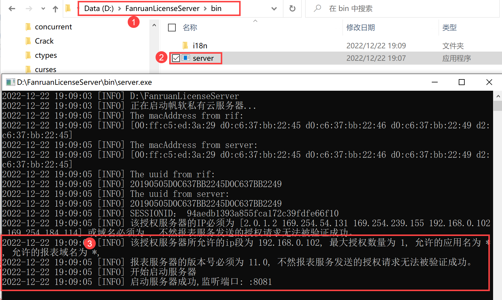 这时,需要找一台物理信息固定的服务器作为授权服务器,然后把授权服务器的机器信息 rif 文件发给商务,生成私有云认证服务器文件FanruanLicenseServer,里面包含一个server.exe文件。