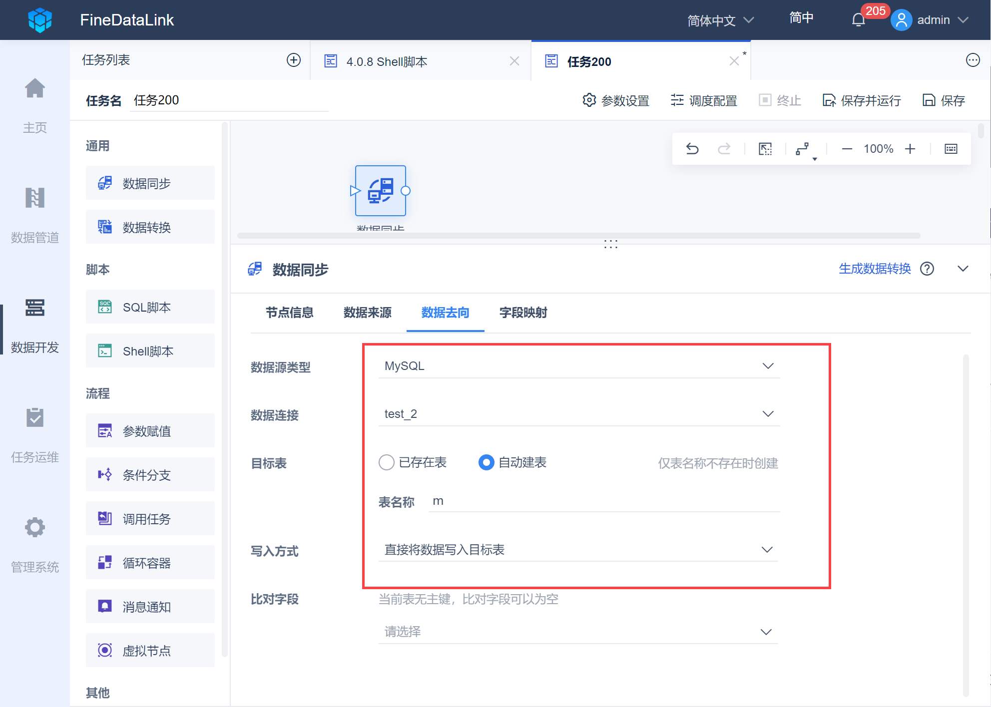 数据去向的设置如下图所示: