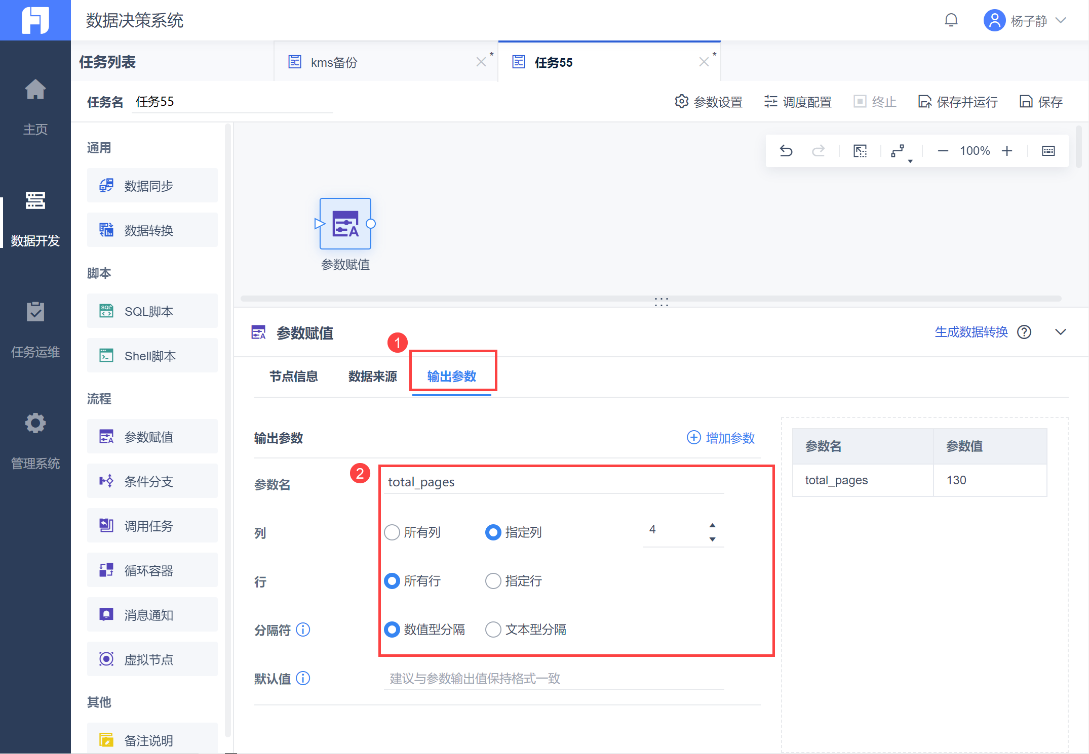 点击「输出参数」,设置参数值为「total_pages」,并将返回的总页数字段取出,如下图所示: