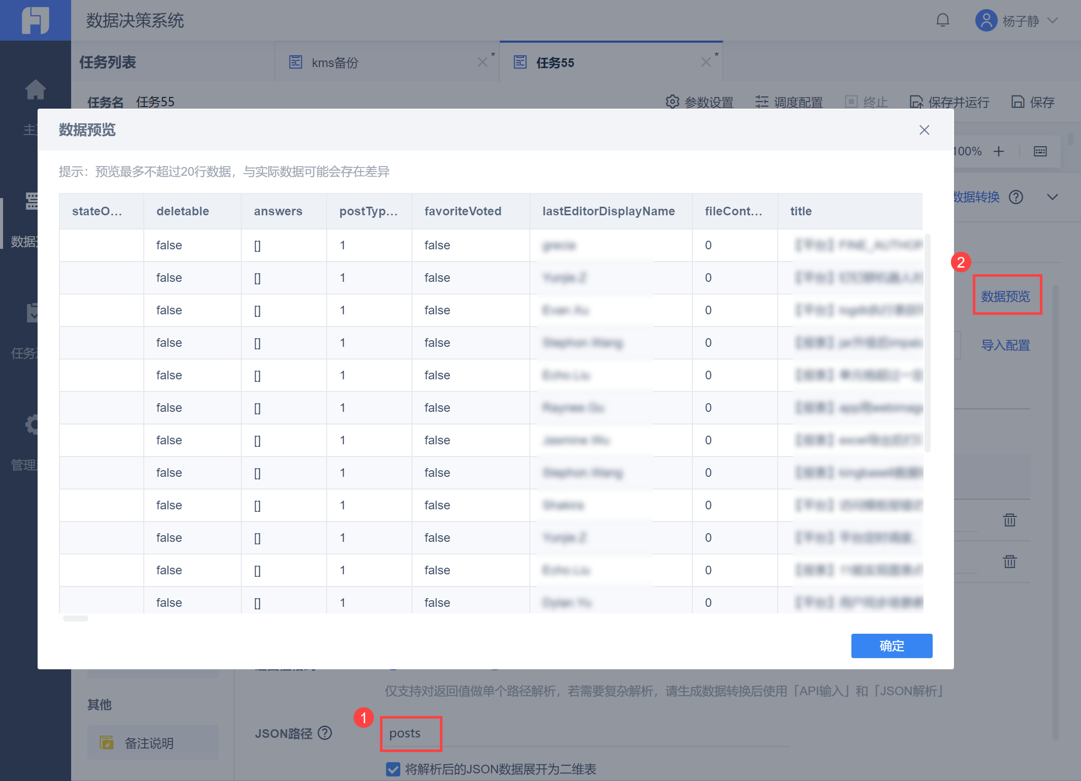 注:如果返回值比较复杂,推荐使用数据转换节点的JSON解析 实现。