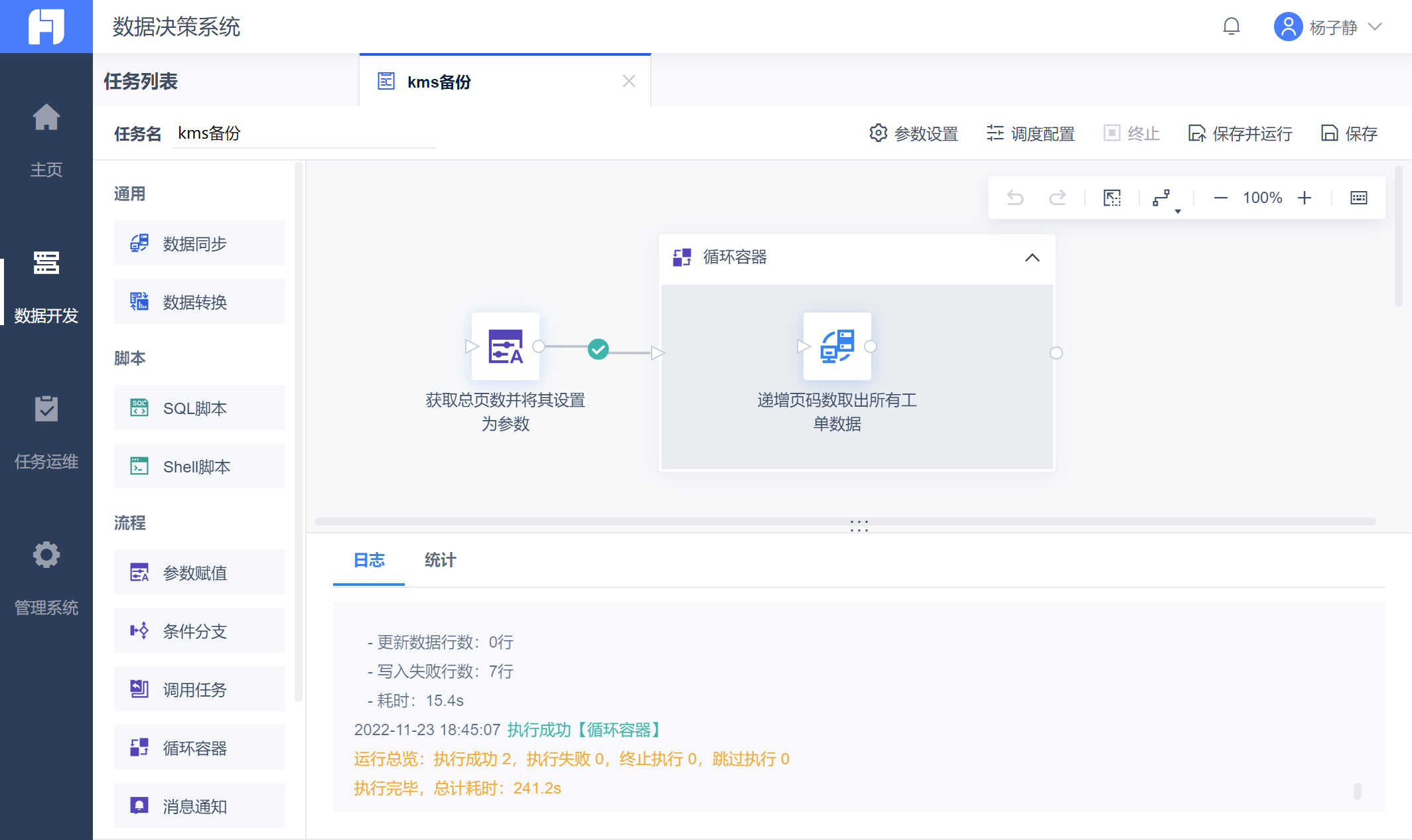 将总页数设置为参数输出,便于后续每页递增执行取数时,到总页数后停止取数。