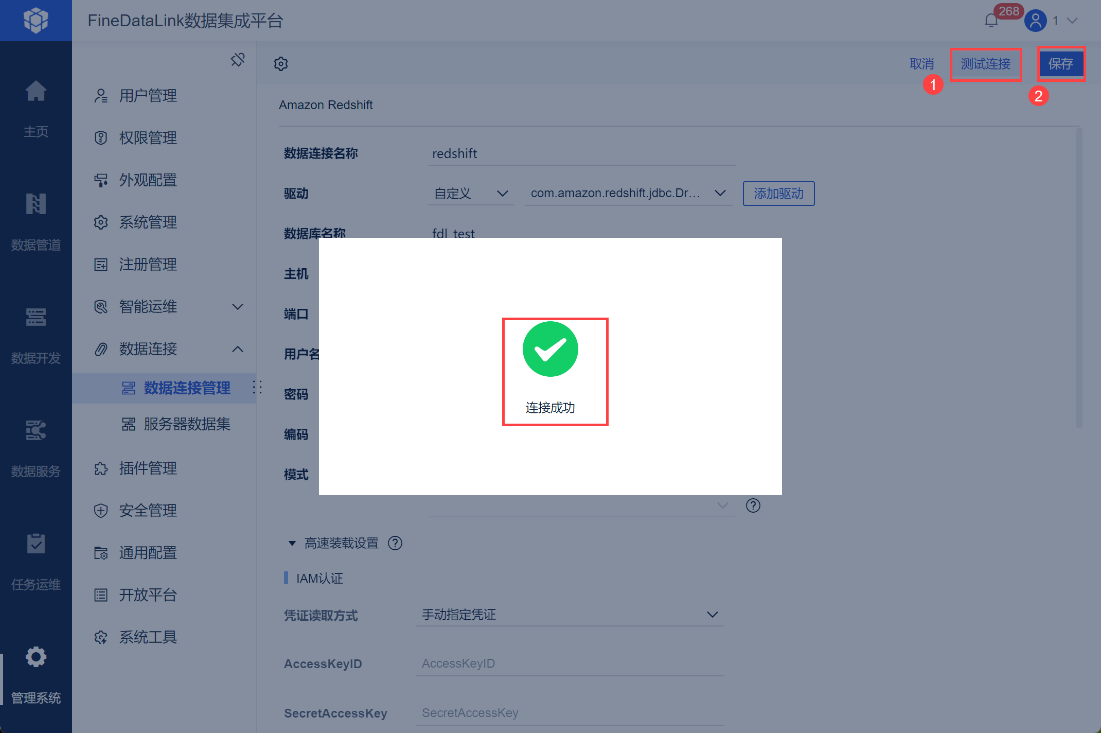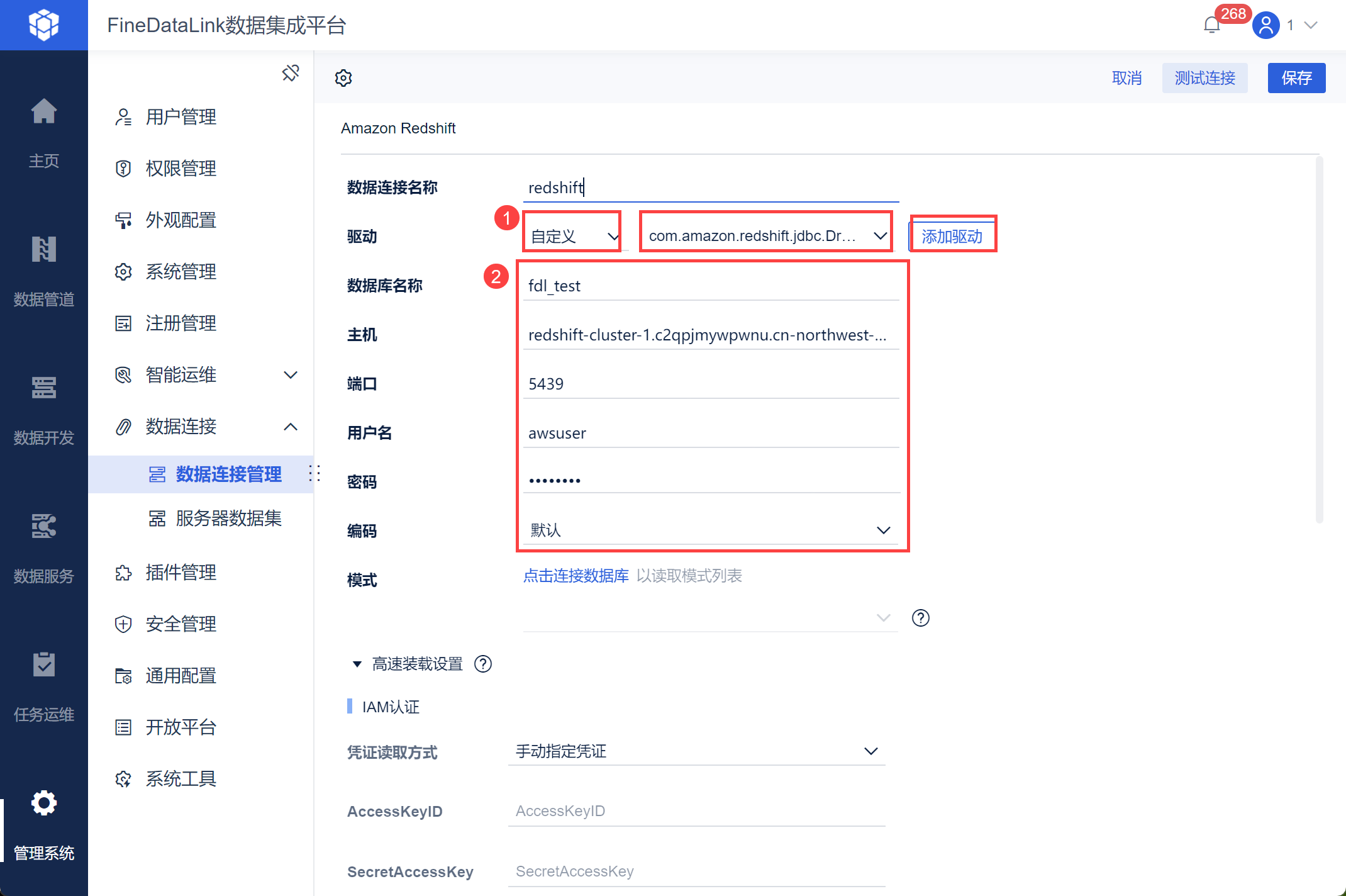 FineDataLink 支持连接 Amazon Redshift ,进行定时任务读写和管道任务写入(作为写入端支持基于COPY实现高速装载和JDBC普通装载两种方式)。